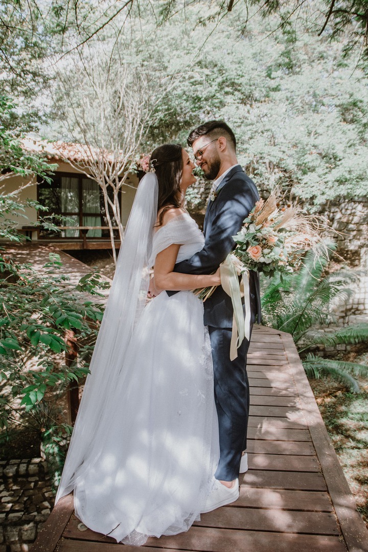 Num estilo boho chic elegantérrimo e com as cores verde, champagne, rosa claro e branco, os noivos transformaram seus sonhos em realidade! Para que isso fosse possível foi preciso uma excelente relação com os fornecedores e muita fé. “Para mim aquele dia foi a materialização do cuidado de Deus conosco, que acompanhou nosso sofrimento de planejamento do casamento no ano da pandemia, perdemos pessoas que amávamos, mas mesmo assim, sentimos Deus naquele lugar”, contou a noiva.