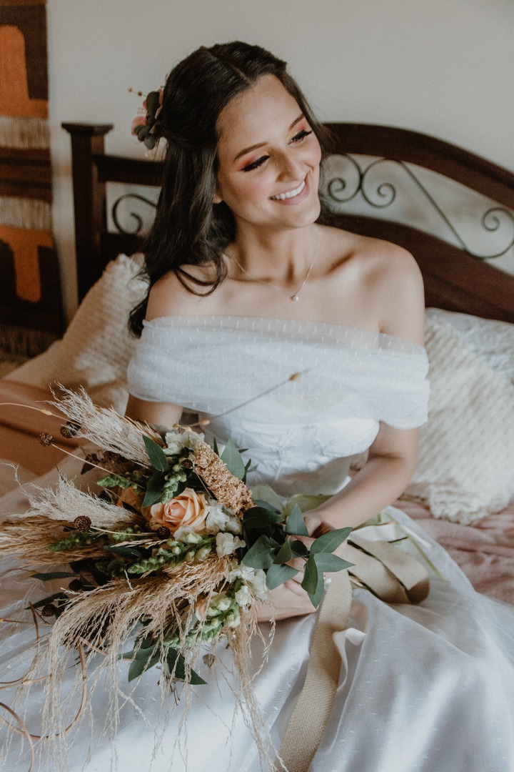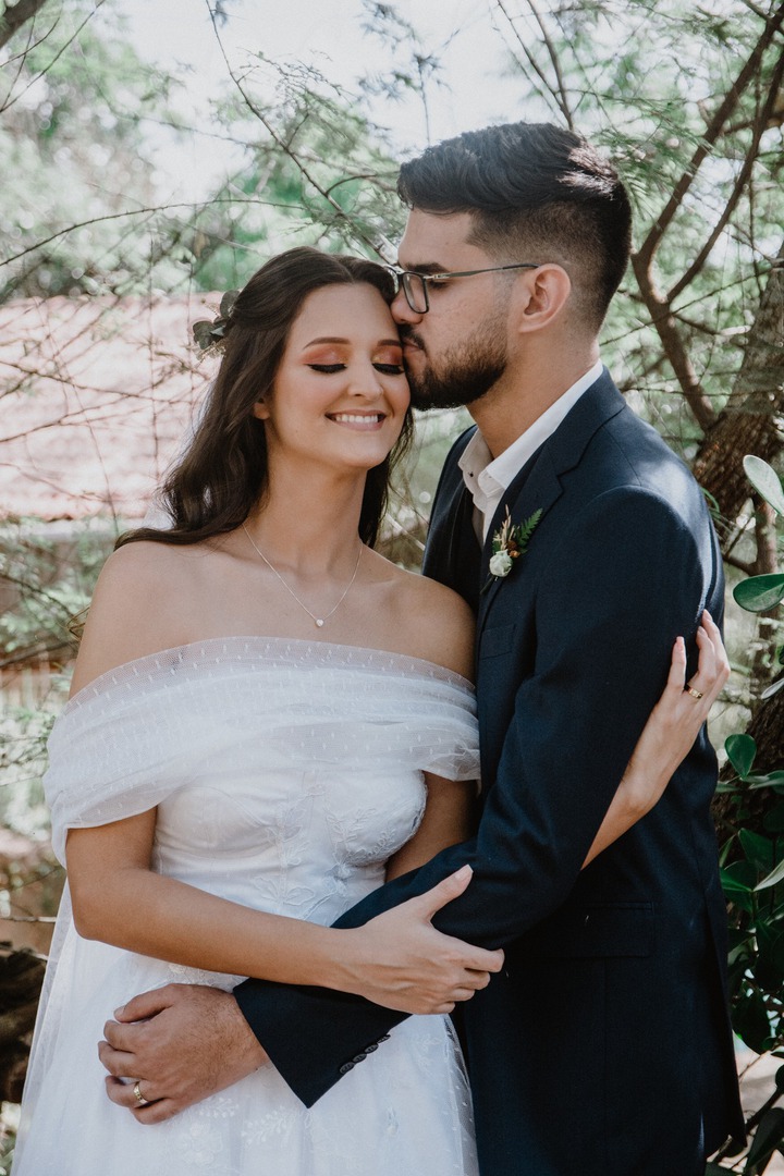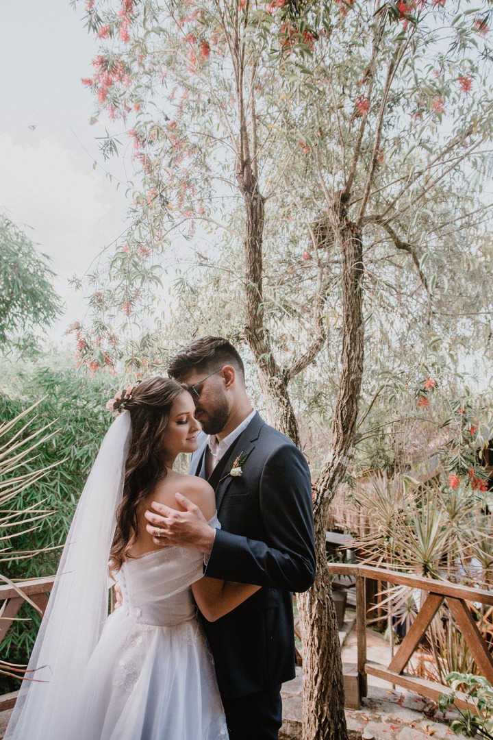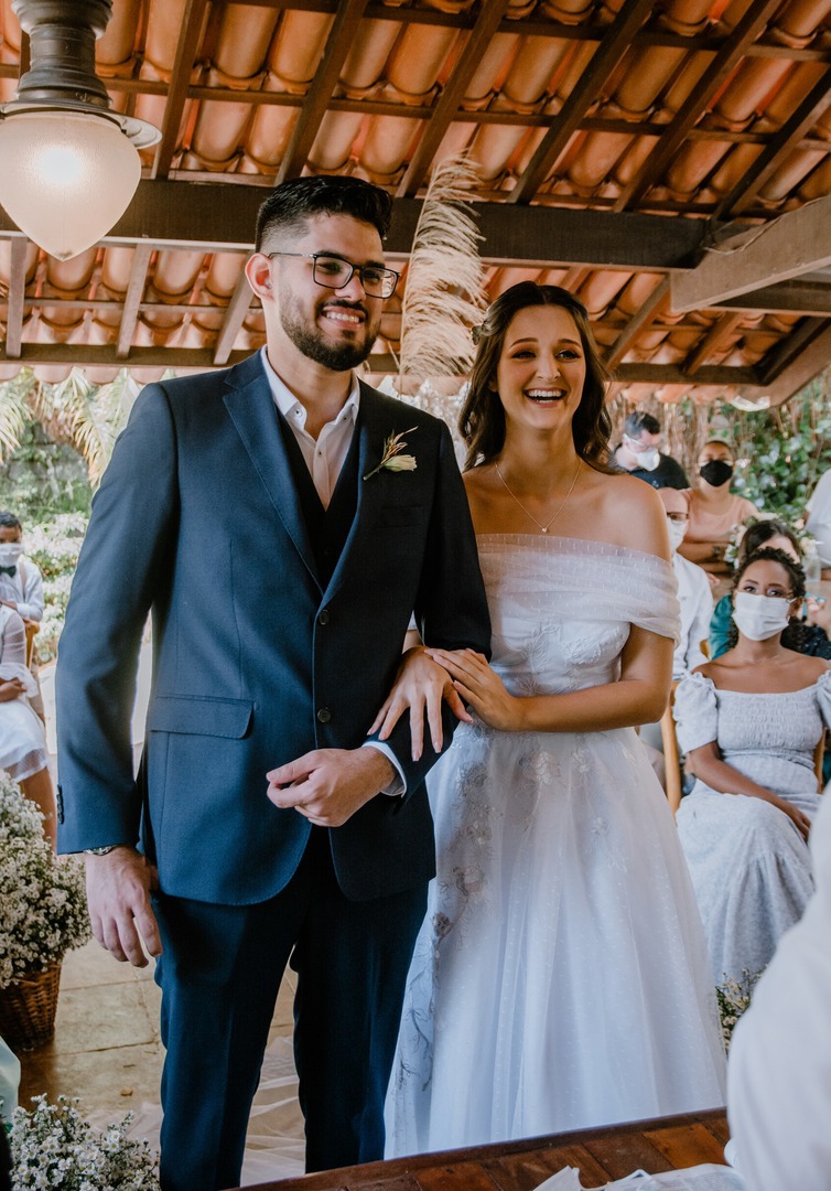 Os preparativos do casamento foram cheios de altos e baixos, por causa das restrições resultantes da pandemia, e foi difícil a decisão de fazer o casamento só para os pais, irmãos e padrinhos. Como se não bastasse, um dia antes da cerimônia a previsão era de chuva! “Oramos e pedimos a Deus para que ele fizesse a vontade dele, mas que se por misericórdia ele quisesse atender um desejo nosso, se não chovesse na hora da cerimônia já estava tudo bem. Às quatro da manhã os fornecedores da maquiagem e cabelo chegaram, olhei pro céu e simplesmente não havia uma nuvem sequer, o céu estava laranja e limpo, quando olhei para o campo nunca tinha visto tantas borboletas na minha vida como naquele dia, mais uma vez Deus estava mostrando que cuidava de tudo”, relatou a noiva.