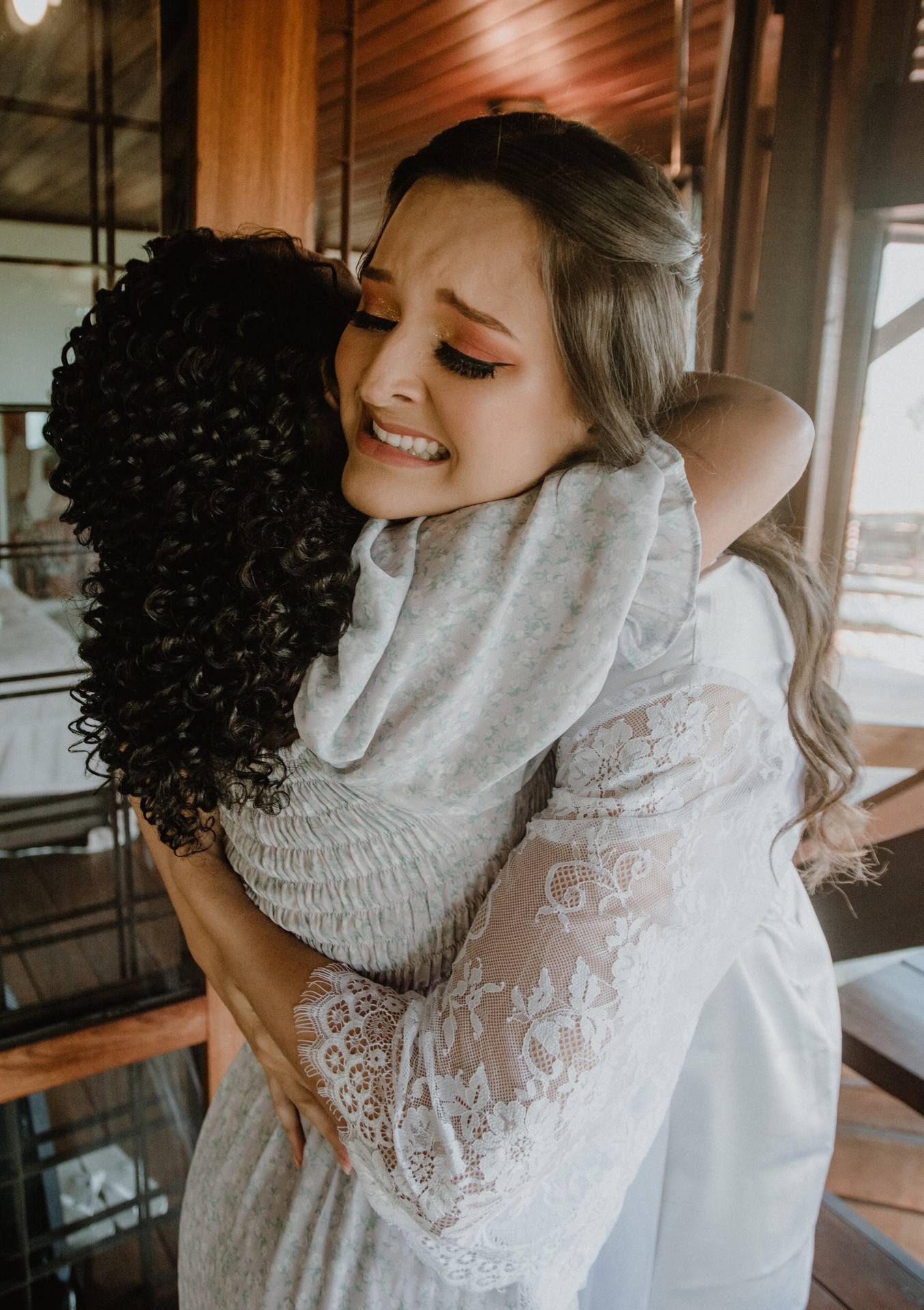 A noiva resolveu fazer um First Look com o pai ao som de uma música que ele mesmo escreveu falando sobre ser grato a Deus, e umas das muitas de autoria dele que usou para cuidar de Mirela e do irmão. As lágrimas não ficaram restritas a noiva e ao pai nesse momento, mas se estenderam para fotógrafo, decorador, cerimonial, garçons e todos que estavam por perto.