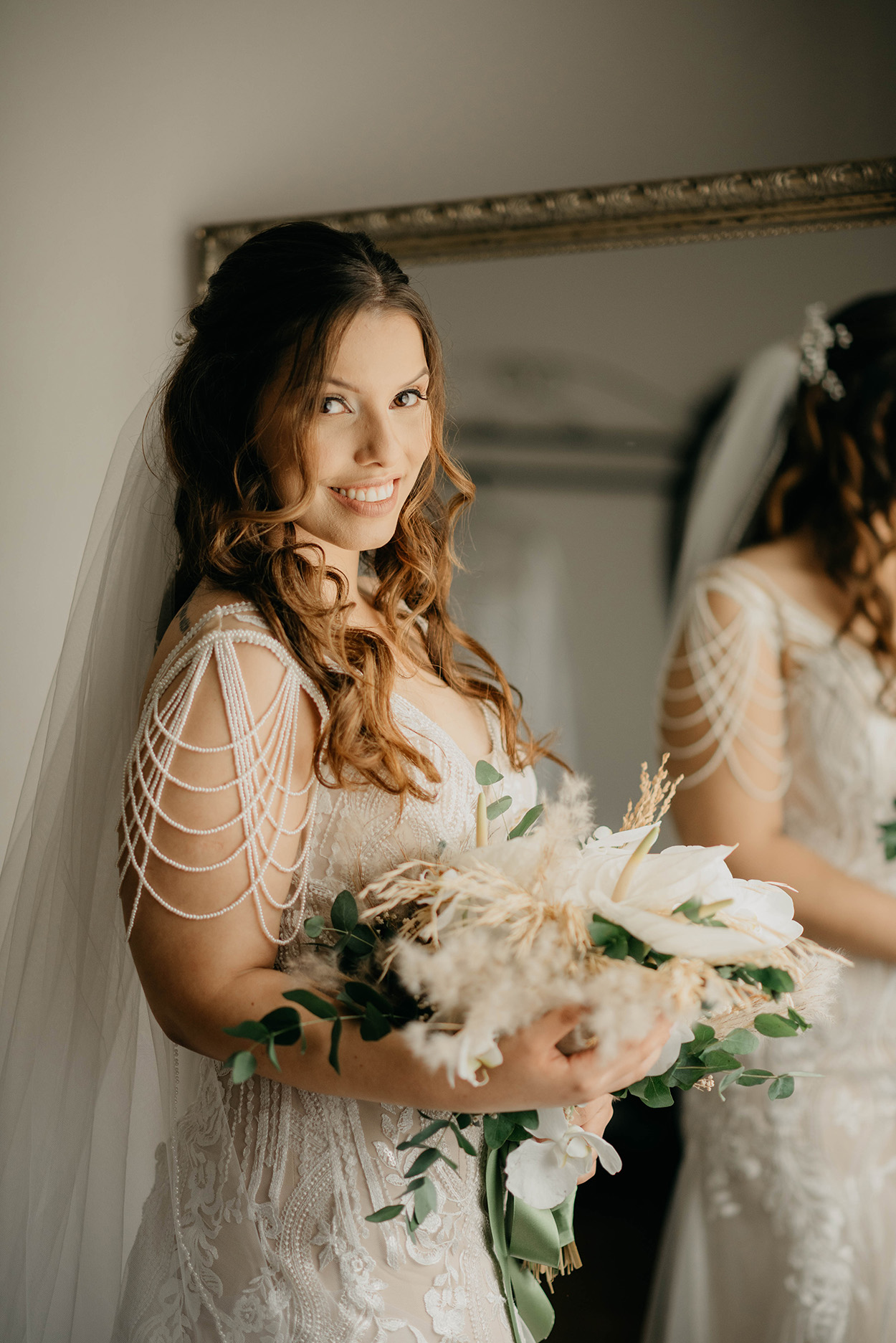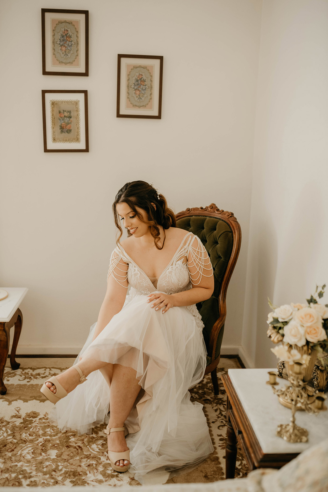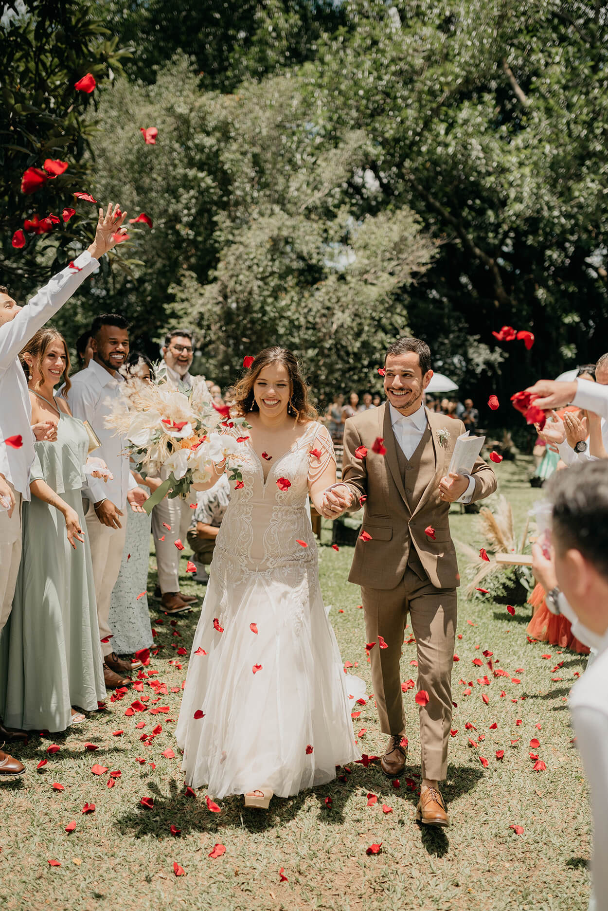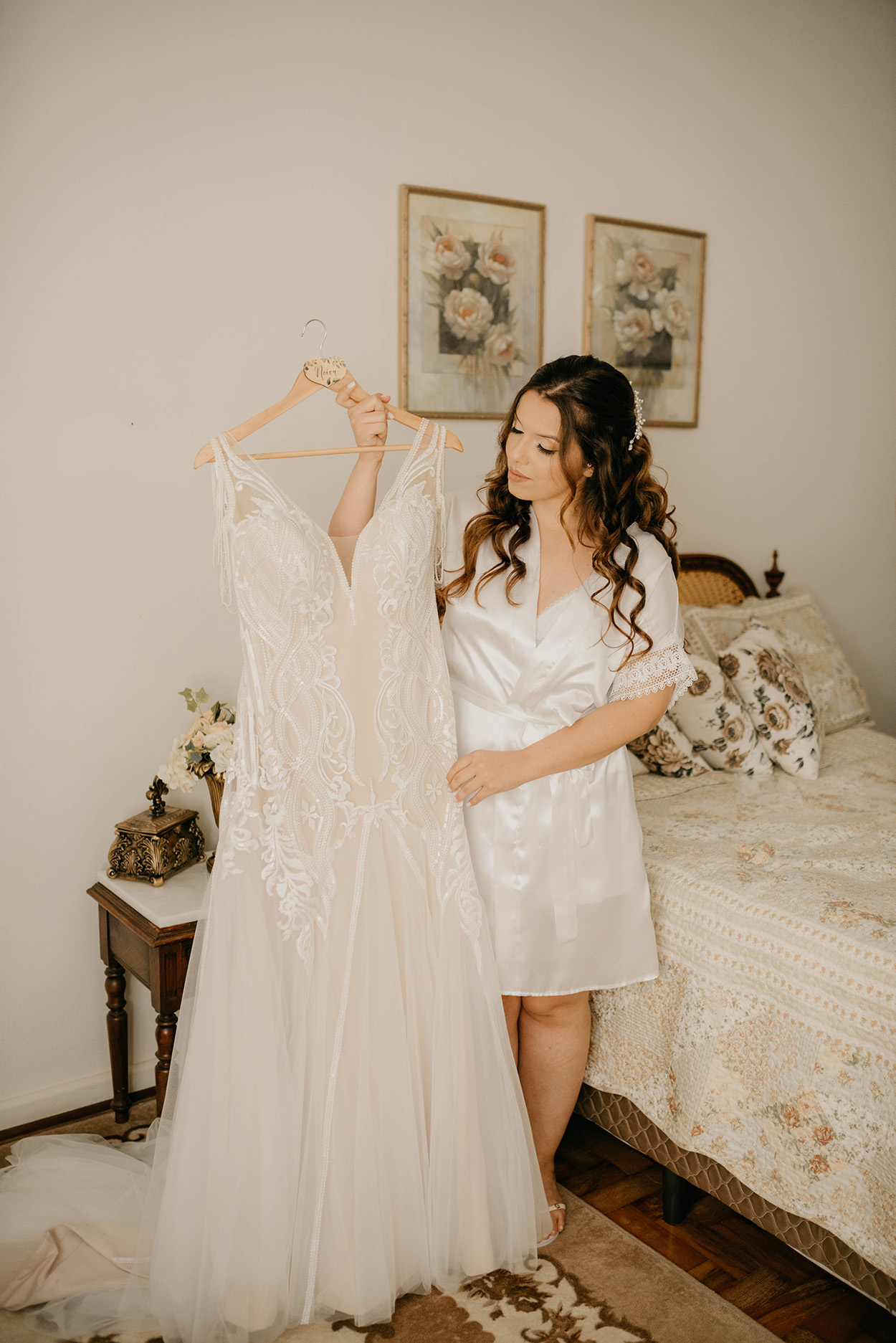 Numa manhã ensolarada, cercados pela natureza, a Giovanna caminhou até o amor da sua vida com um belíssimo vestido que amamos!