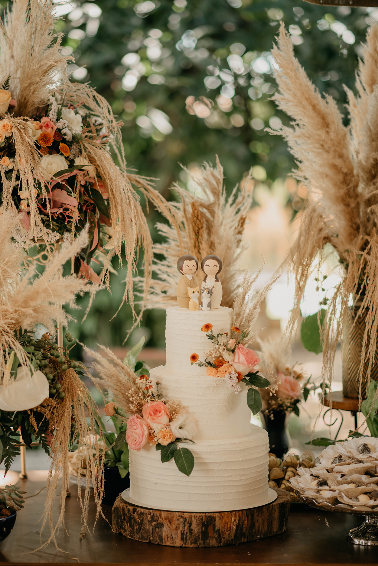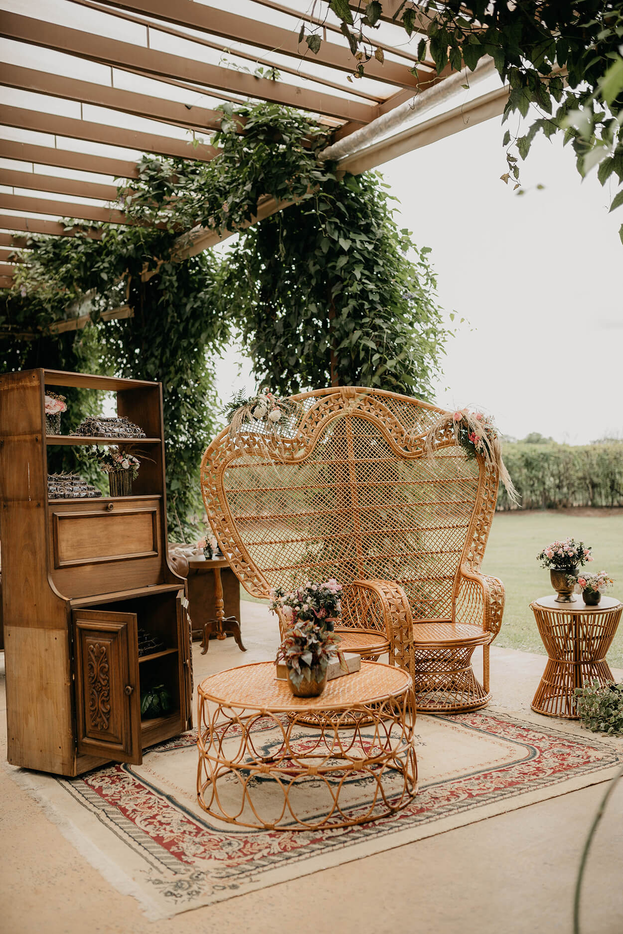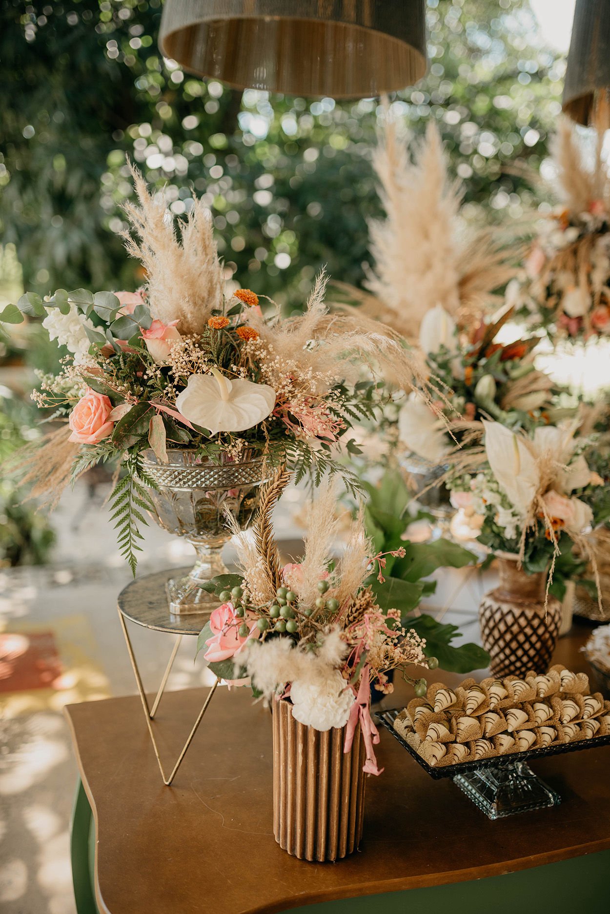 Estamos in love com cada detalhe dessa decoração no estilo boho chic re-che-a-da de capim dos pampas.
