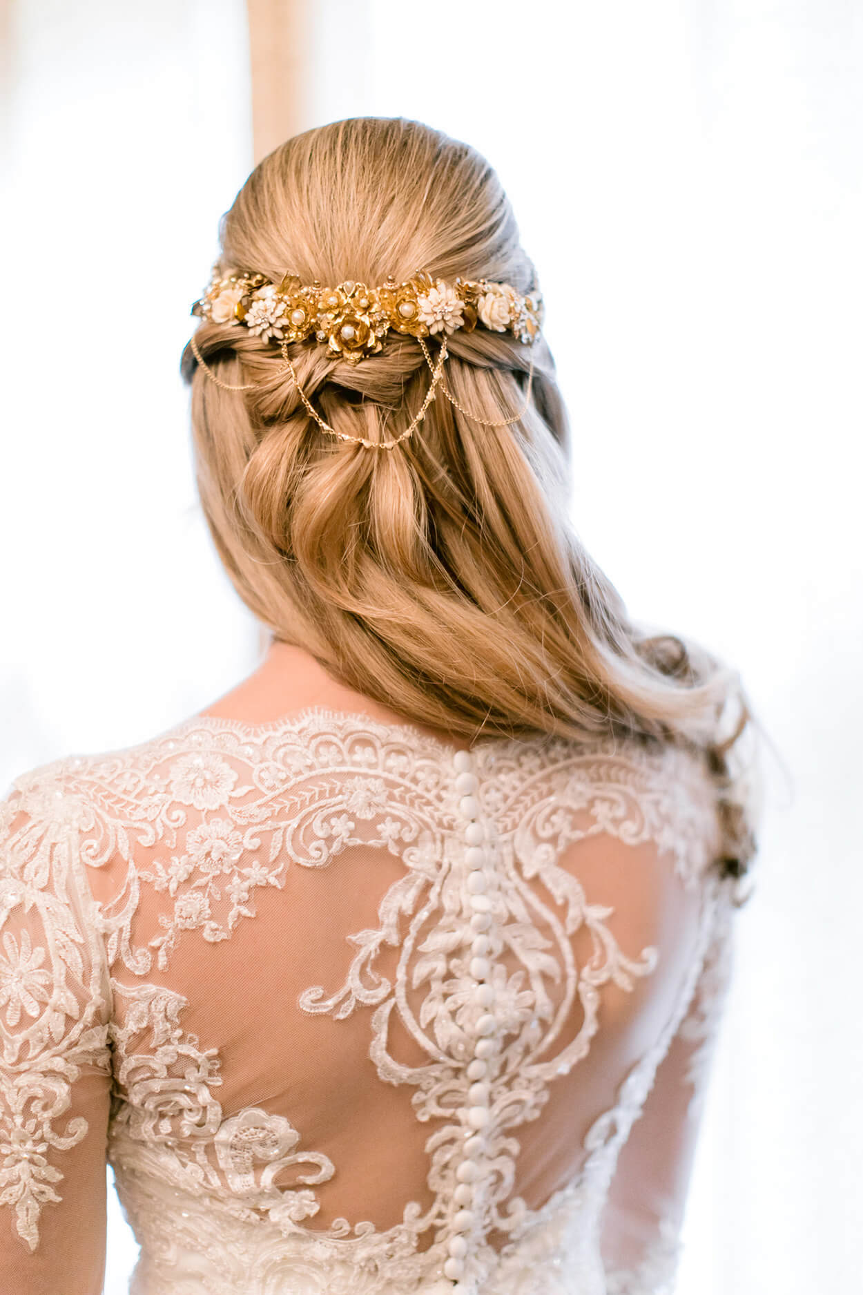 O topete discreto ganha uma franja lateral que harmoniza muito bem com o formato de seu rosto quadrado. E ainda tem essa joia para finalizar o penteado. A verdade é que esse semi preso foi a escolha perfeita!