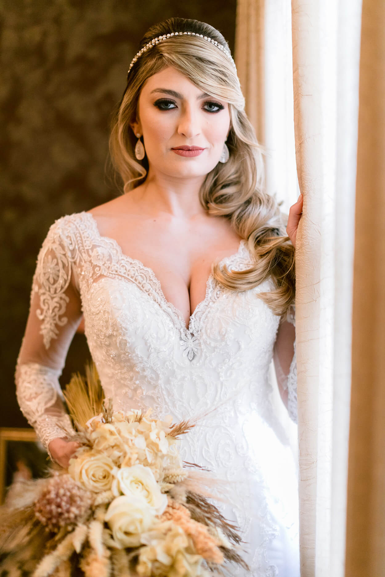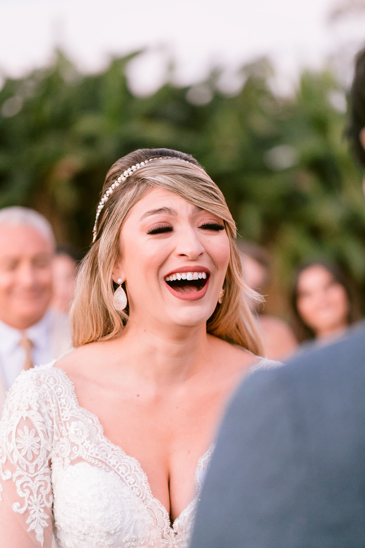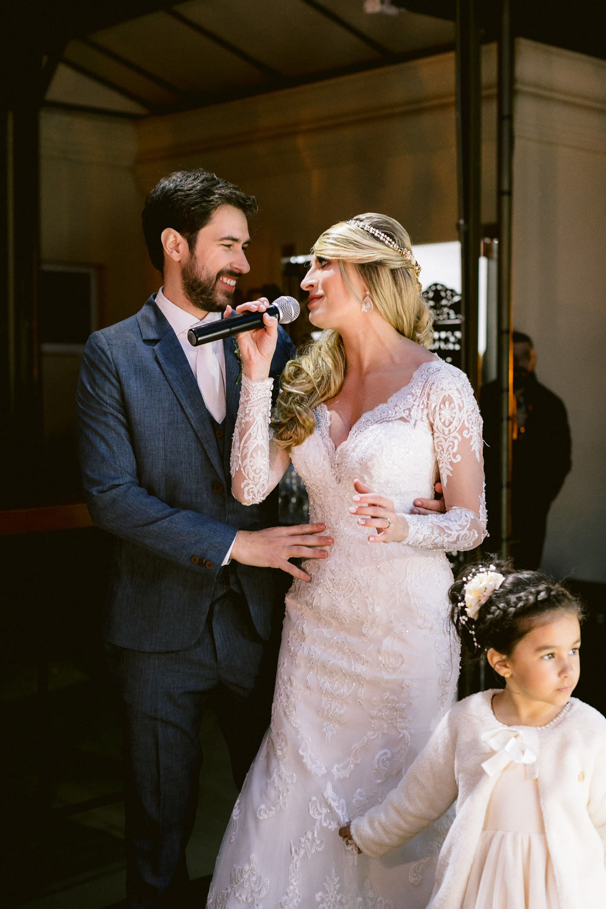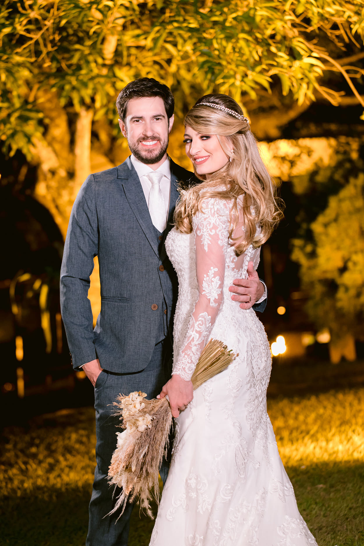 Não tem como não se apaixonar pelo vestido, pela decor, pelo espaço, ah, por tudo! Mas vamos começar pela noiva: Vivian ficou deslumbrante com esse look mais clássico.