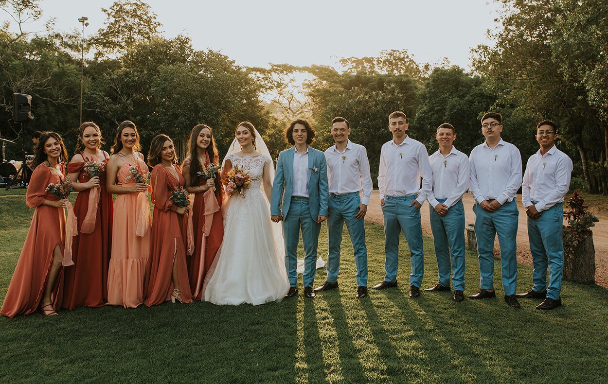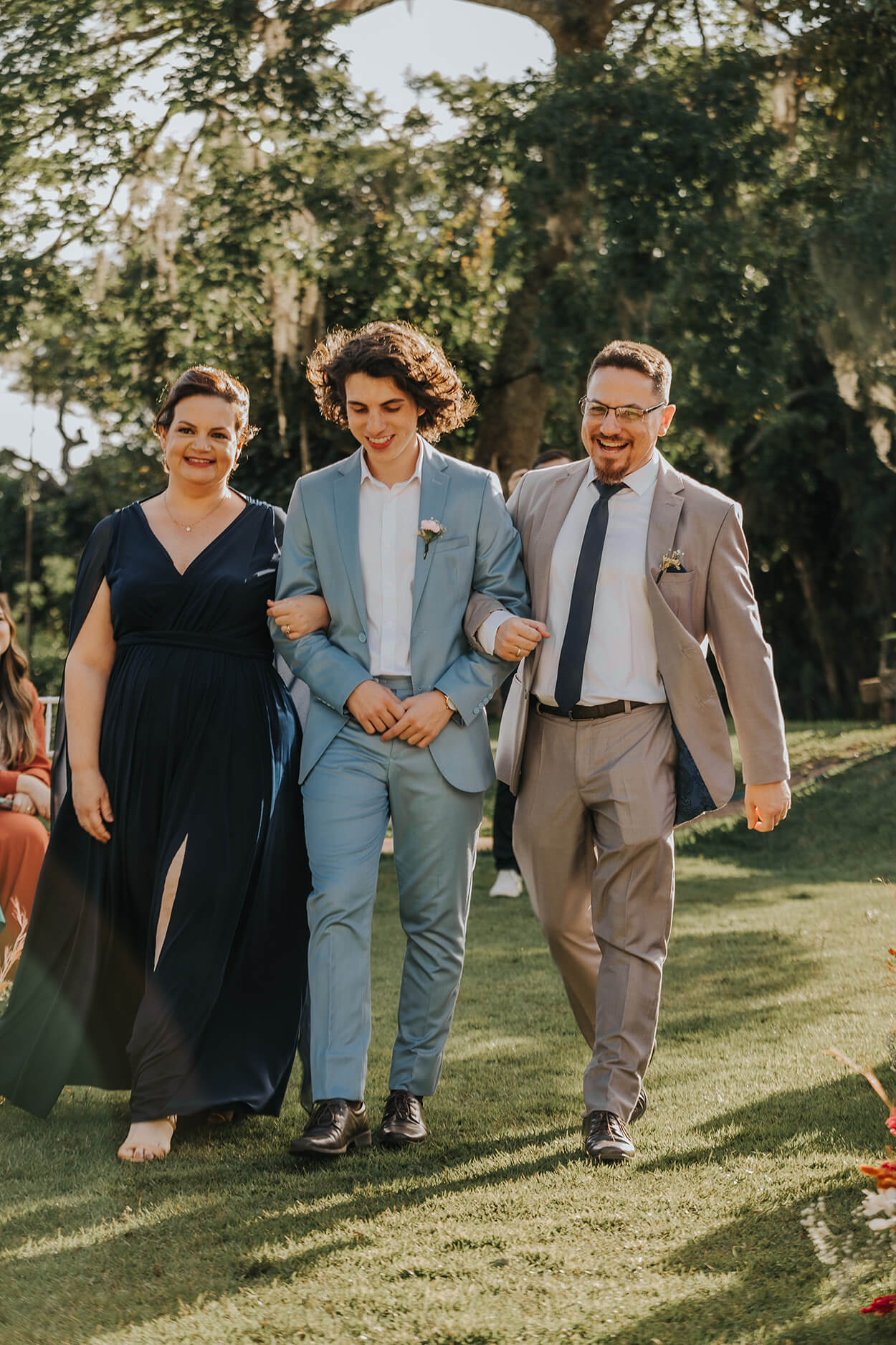 Kaleb foi um noivo muito engajado desde o início, por isso, as expectativas com o look dele e dos padrinhos ficaram lá em cima! E nós adoramos o visual sem gravata e as lapelas minimalistas para os seus convidados especiais. Mas, enquanto ele aparentava estar bem calmo, a Lu estava ansiosa.