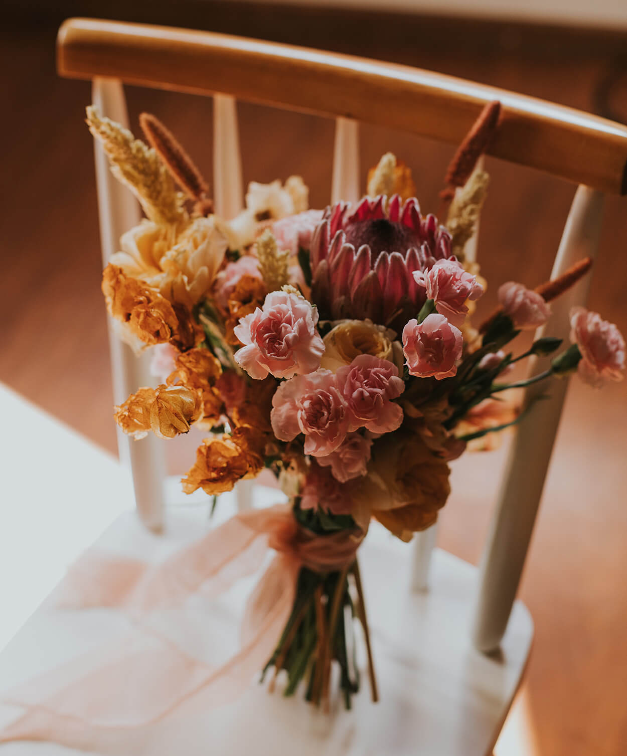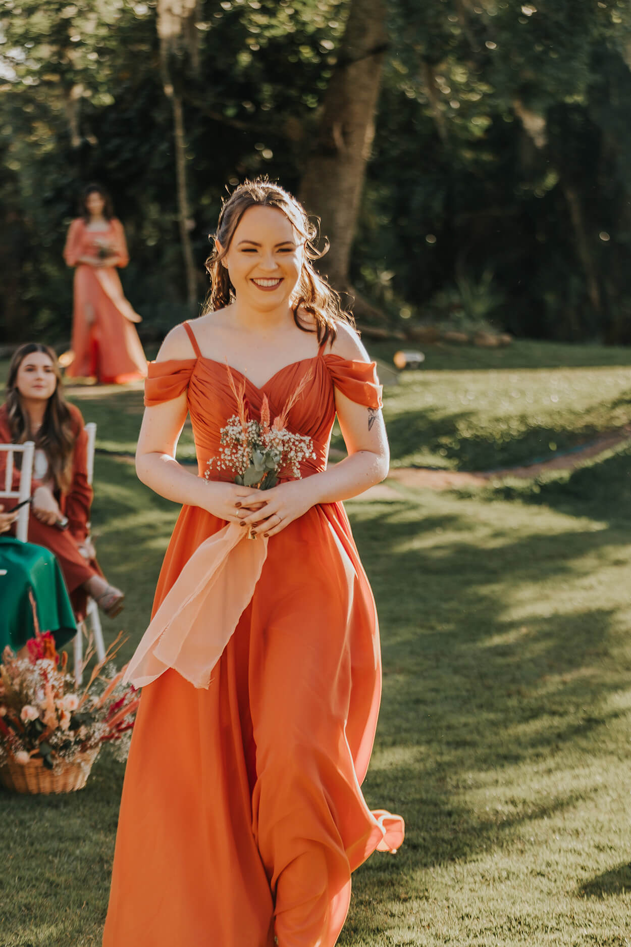 Olha só o que a noiva contou pra gente. “Eu diria que o casamento seguiu o estilo boho como ponto de partida, mas construímos uma versão mais delicada e minimalista.”