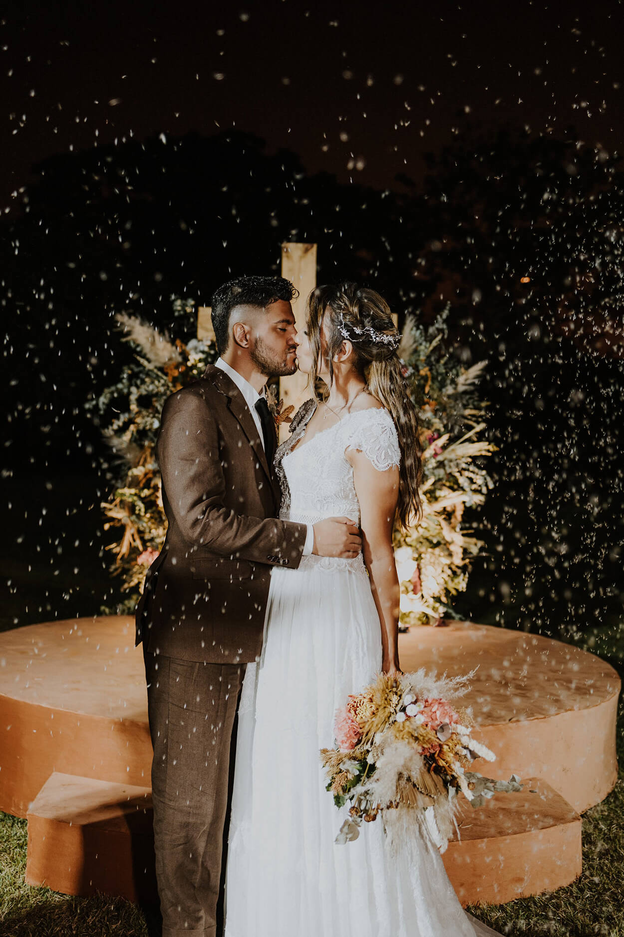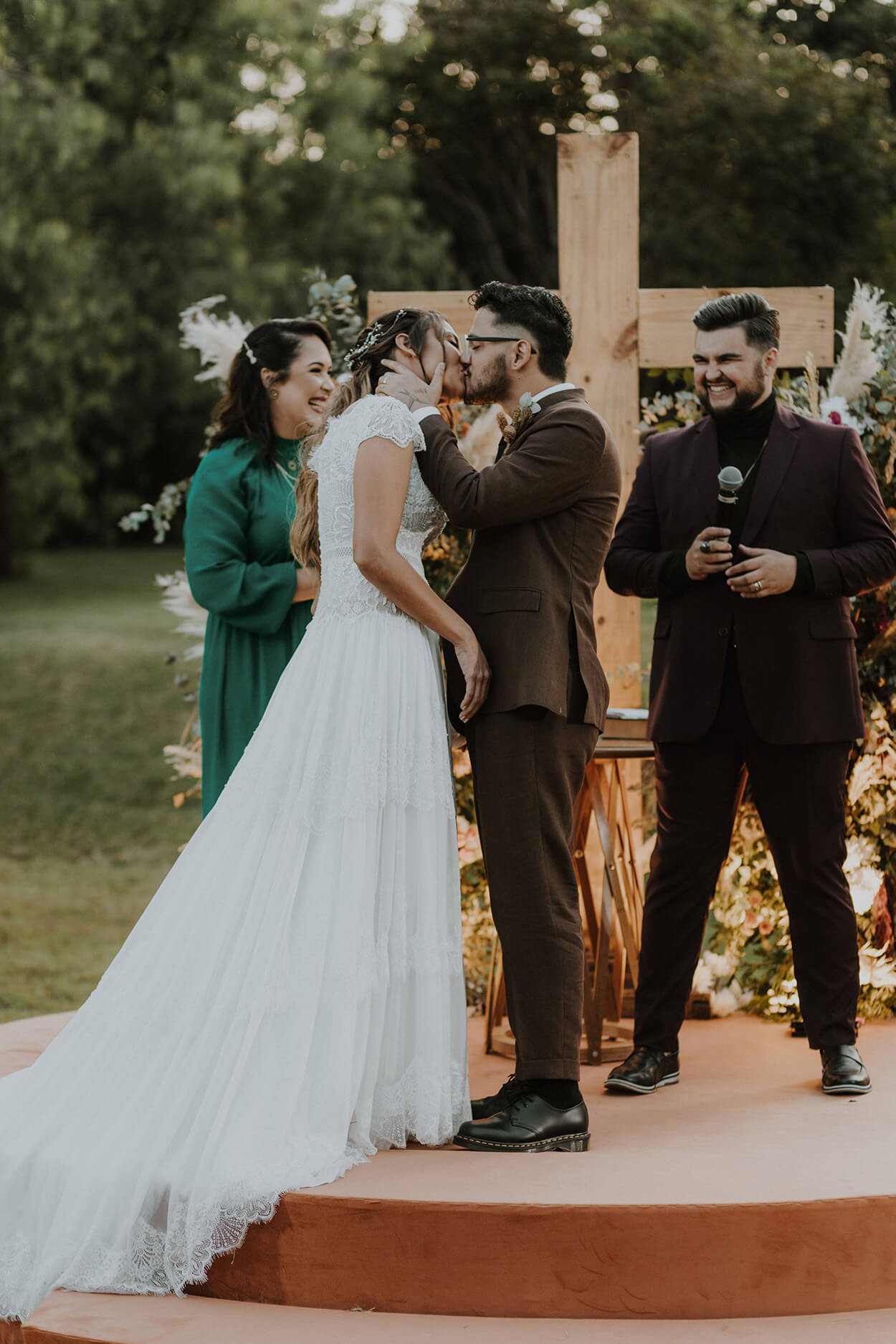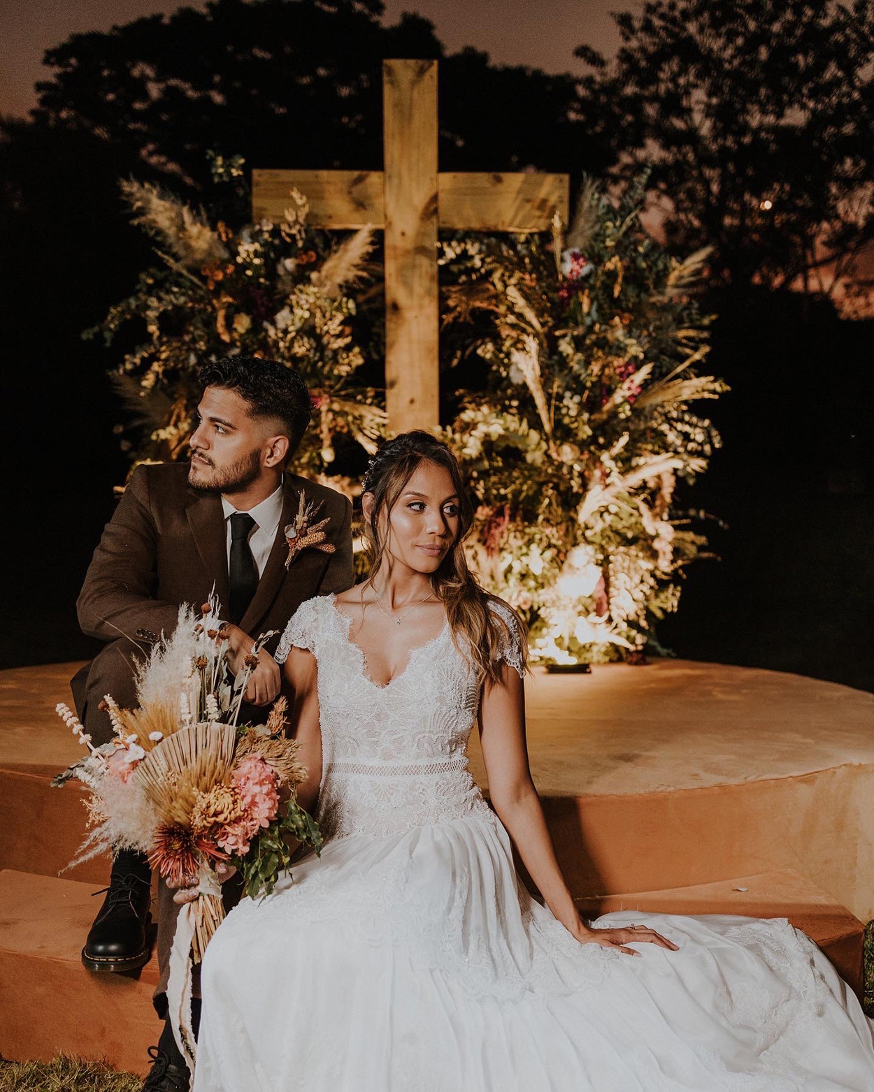 O boho esteve presente em cada pedacinho do casamento! É até difícil escolher o que mais mexeu com nossos corações, mas não tem como negar que o altar está impecável.