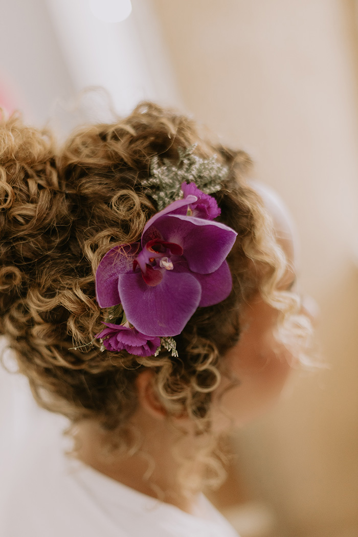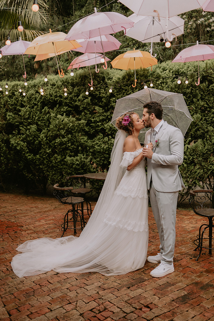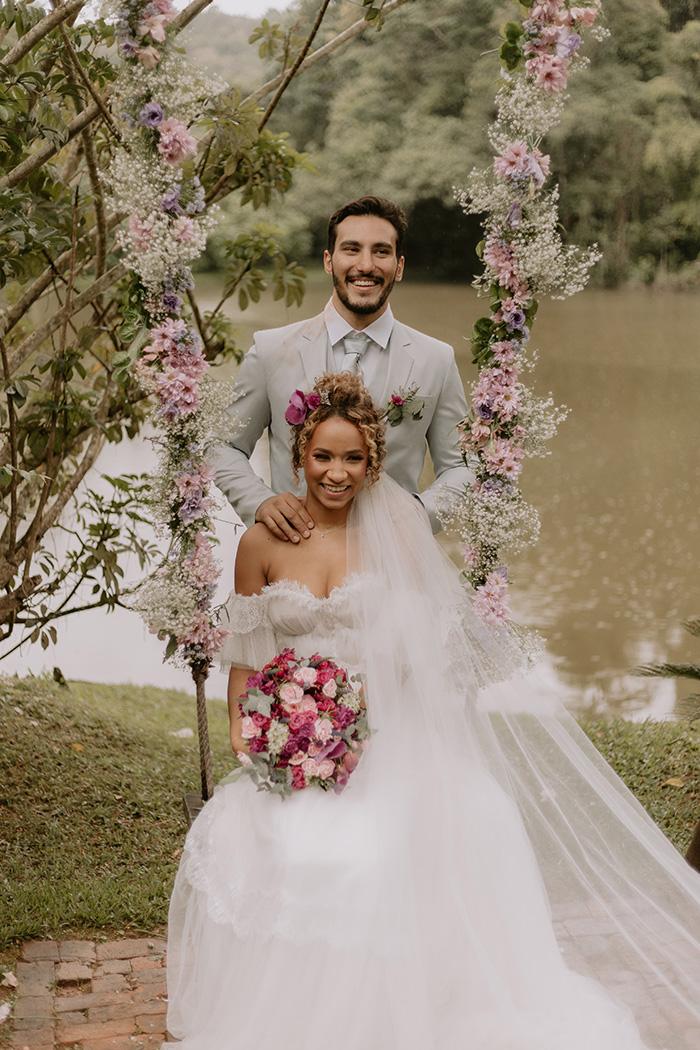 Eles aproveitaram a beleza do lugar para adicionar uma decoração em tons de roxo, serenity e Very Peri, cor do ano 2022!