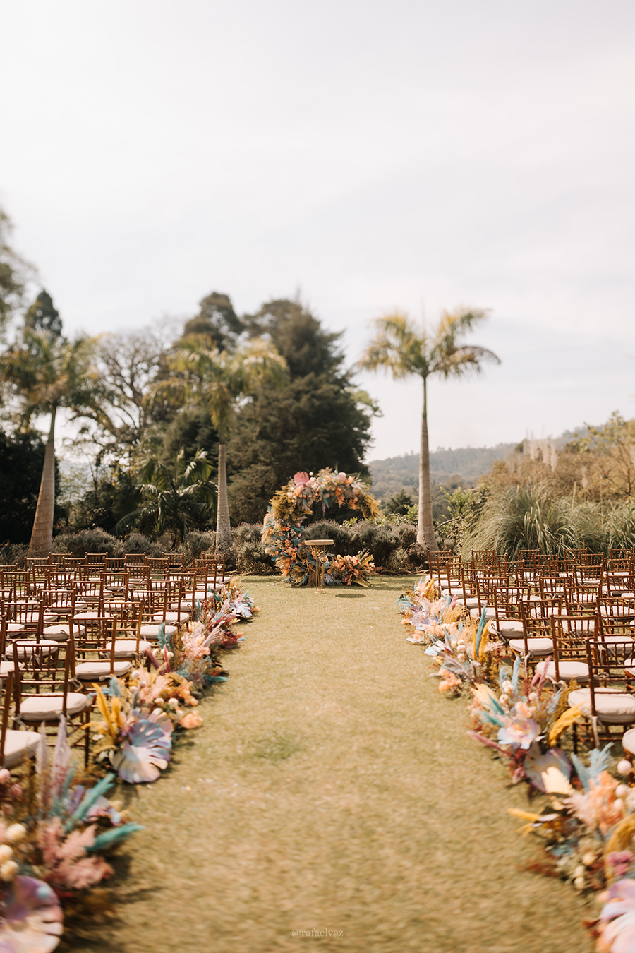 A Adriana conta que desde o princípio do planejamento ela já tinha em mente uma proposta bem específica para o projeto de decoração: “queria um casamento bem colorido, em tons pastel/candy colors, que refletisse exclusividade, alegria e romantismo, algo que se aproximasse do estilo chamado ‘modern boho’, mas abrasileirado rs.”
