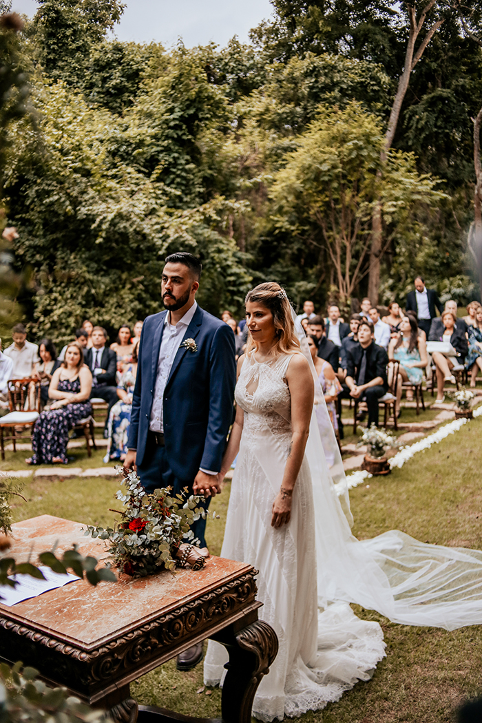 Como a Luciana e o Roberto não queriam um cerimonialista, convidaram os pais para fazer a celebração da união deles, assim a cerimônia ficaria com a sensação de super intimista e personalizada. Os dois sabiam que o que seria dito ali seria realmente do coração deles!