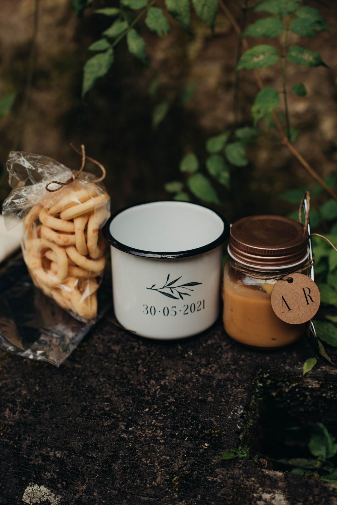 As lembrancinhas também foram todas DIY, a mãe da noiva costurou as sacolas de tecido que continham as lembrancinhas, os noivos compraram potinhos de vidro e encheram com doce de leite. Huummm!!!