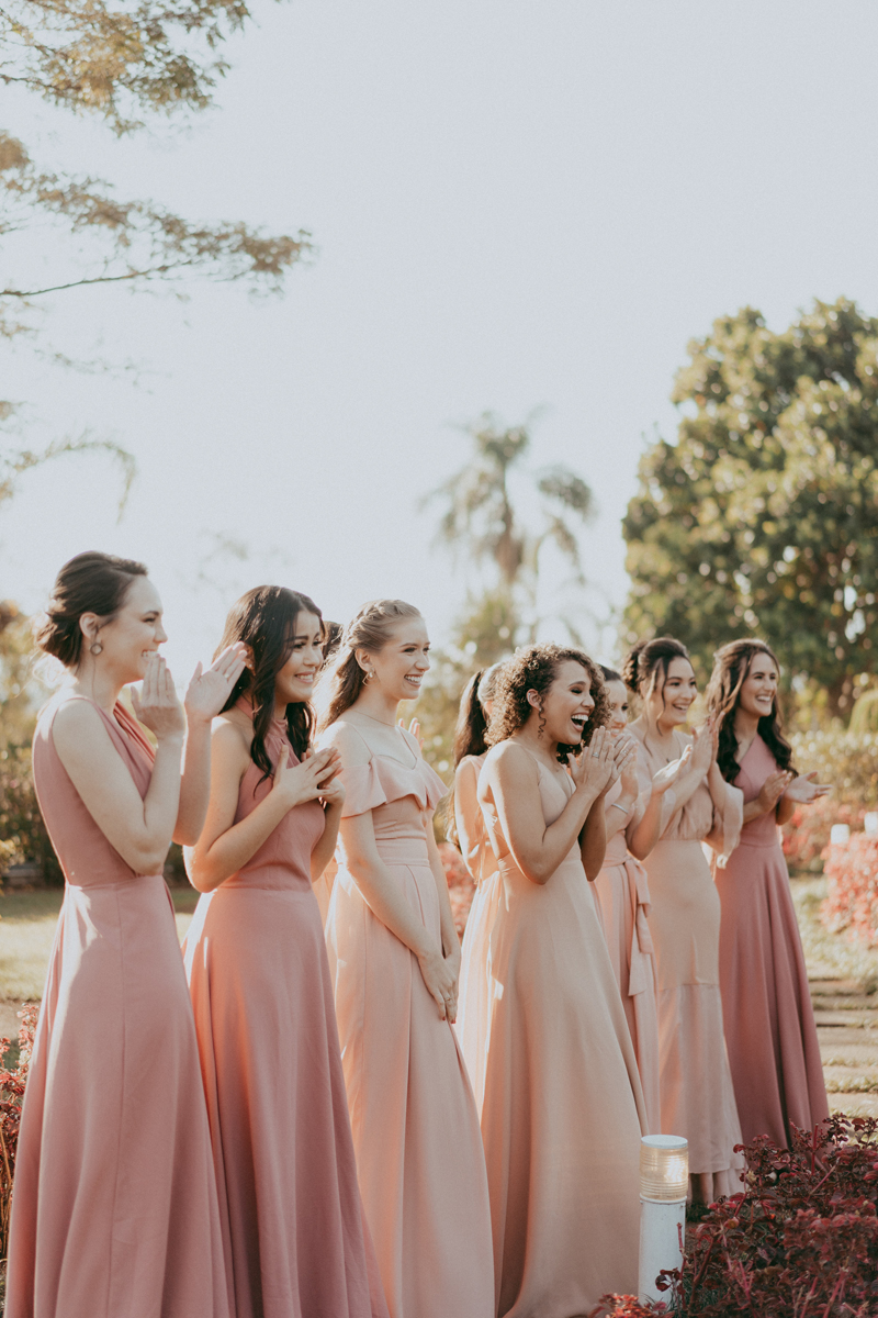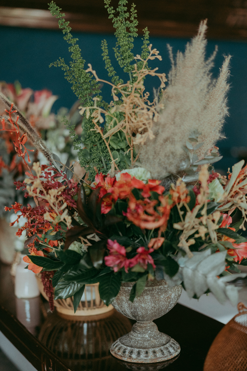 Para realizar esse sonho, a Carol e o Tiago pediram para a Flow decor usar tons de outono/inverno na decoração e flores no espaço em Bragança Paulista, São Paulo; por isso chegaram aos tons de verde (muito verde), marsala, laranja, salmão e rosé.