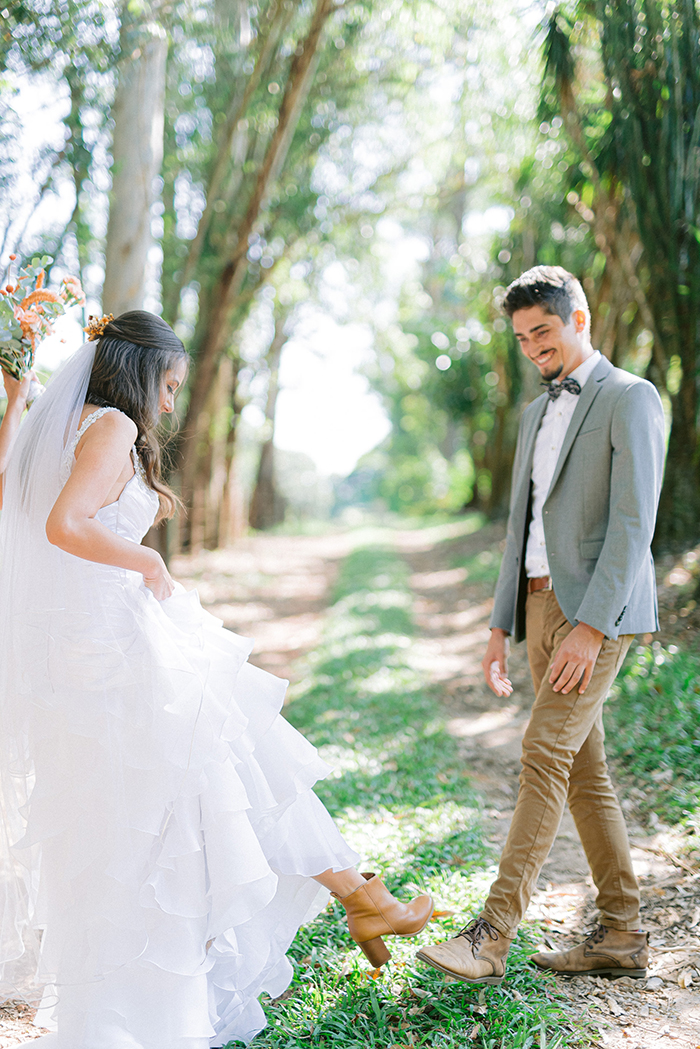 “Sempre gosto de dizer que começamos a planejar o casamento com várias ideias soltas e elas vão se encaixando e mudando, mas a essência não muda. Nossa vontade sempre refletir nossa identidade, estilo e gosto em TUDO e conseguimos!” Os dois gostam do estilo folk e boho, por isso seguimos essa linha.