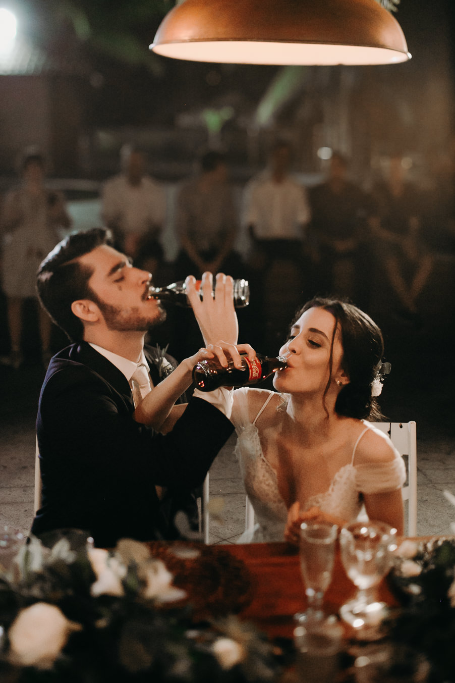 Uma das partes mais legais de todas foi quando eles fizeram o brinde com Cola-Cola! Ficaram um ano sem tomar o refrigerante porque decidiram entrar num propósito pelo casamento! A Camila e o Alécio são apaixonados por Coca, então imagina que sensação foi tomar a de vidro! Outro momento perfeito foi quando eles se juntaram com a banda para tocar! “Que sensação maravilhosa! Cantar com os nossos melhores amigos, com a nossa banda amada, foi um sonho! Que momento, ficamos extasiados! Todo mundo cantando, dançando ao som delicioso de folk, sorrindo, brincando…”