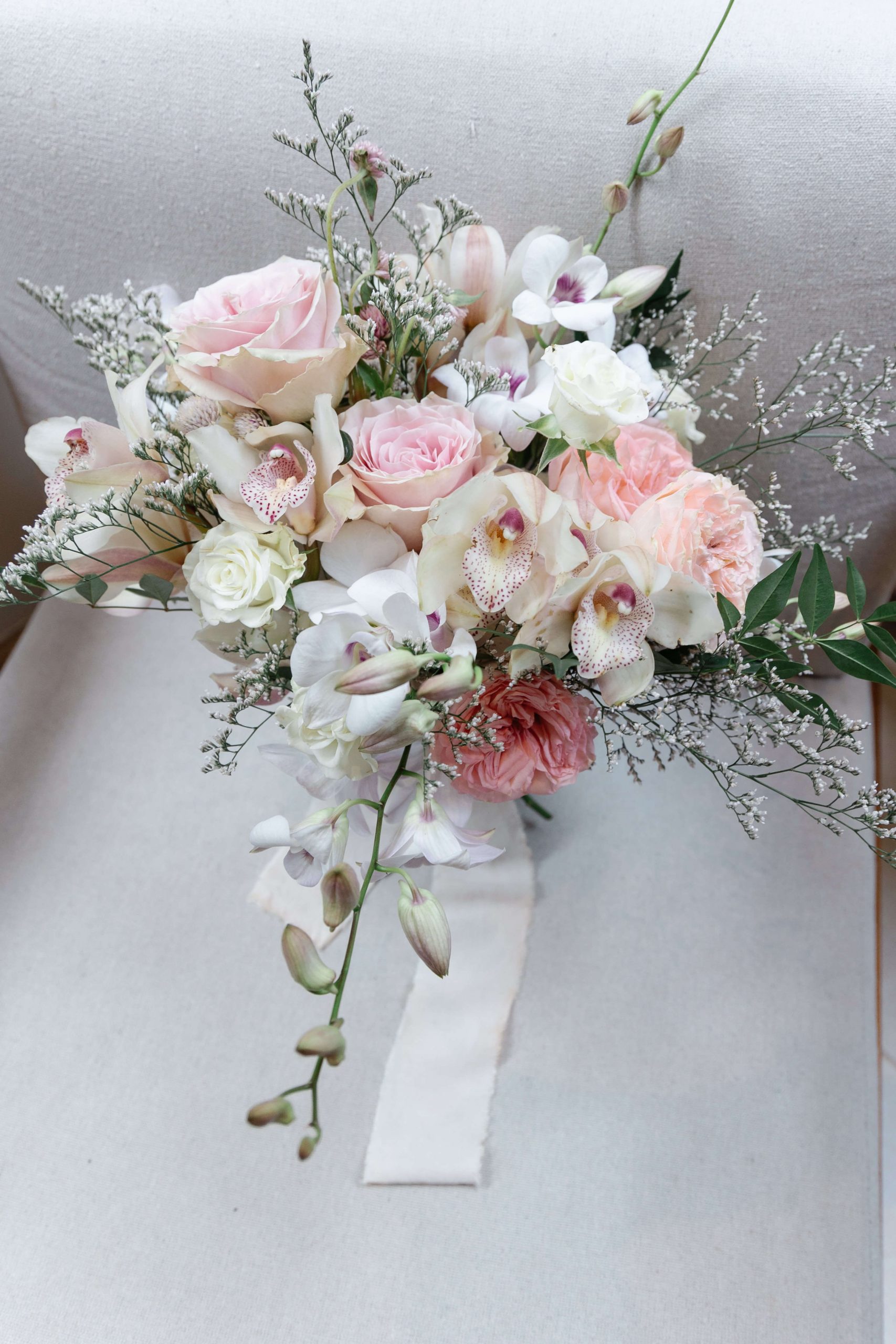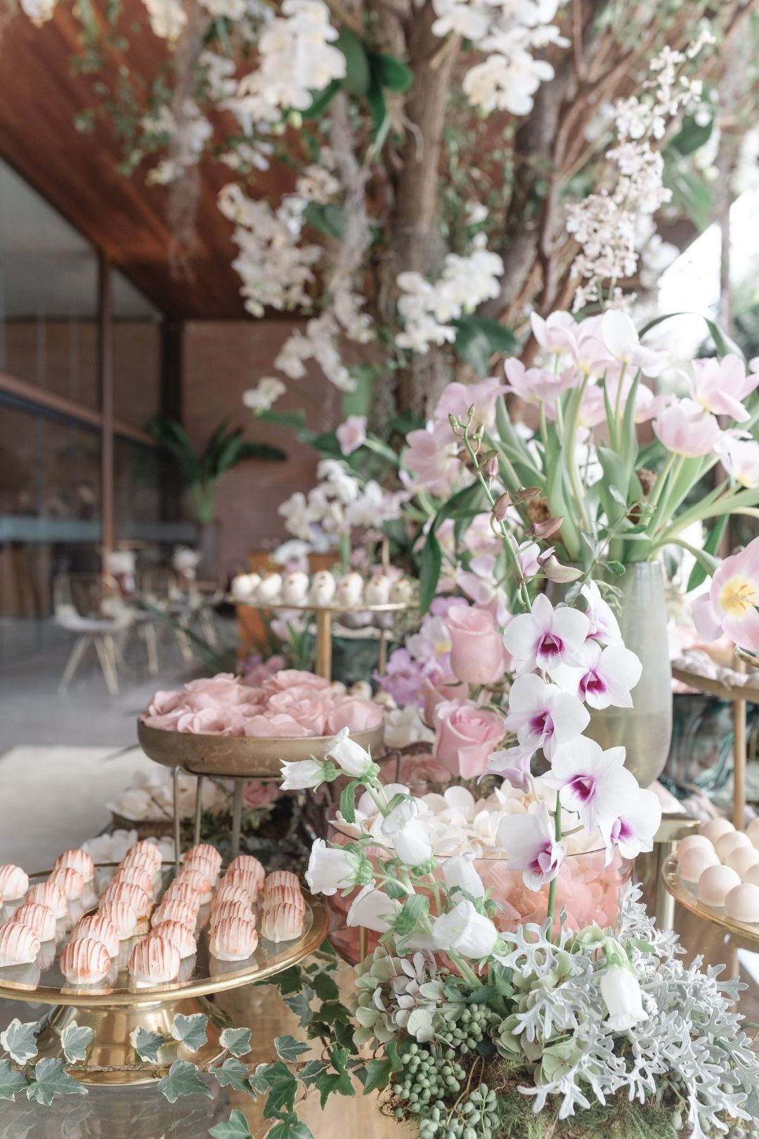 Ficamos encantadas com tantos detalhes delicados no estilo clássico romântico numa paleta de cores branco e rosa. A Stephanye ainda aproveitou para fazer projetinhos DIY como as lembrancinhas: “Enchi todos os potinhos de aromatizante e personalizei. Ficaram uma graça”.