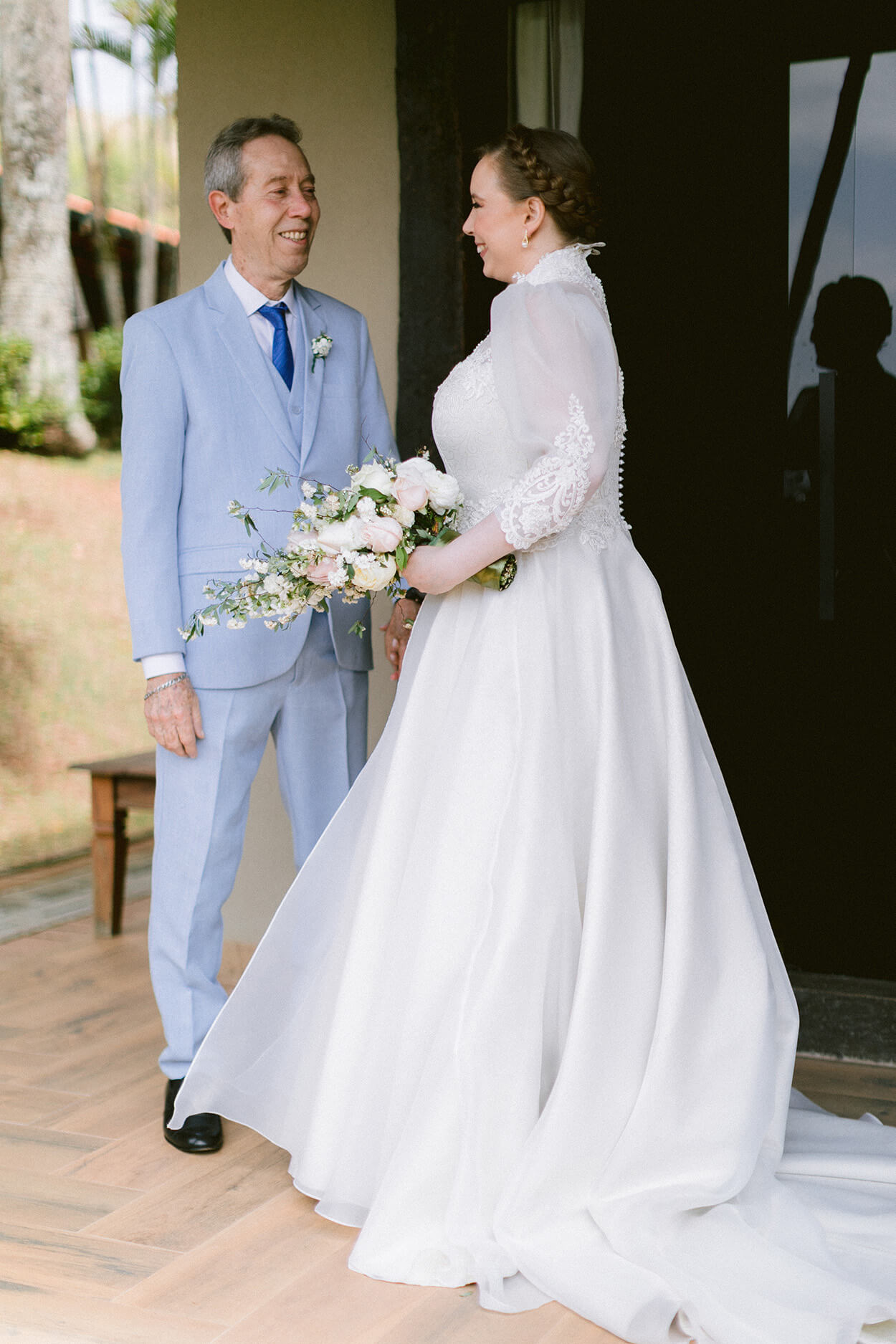 Sem dúvidas, um dos momentos que mais deixaram nossos olhos marejados foi o first look da noiva com o seu pai. A Carla é filha única, então imagina só a emoção de ver a sua filha amada pronta para caminhar até o altar?