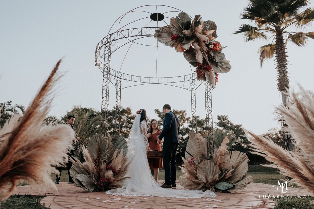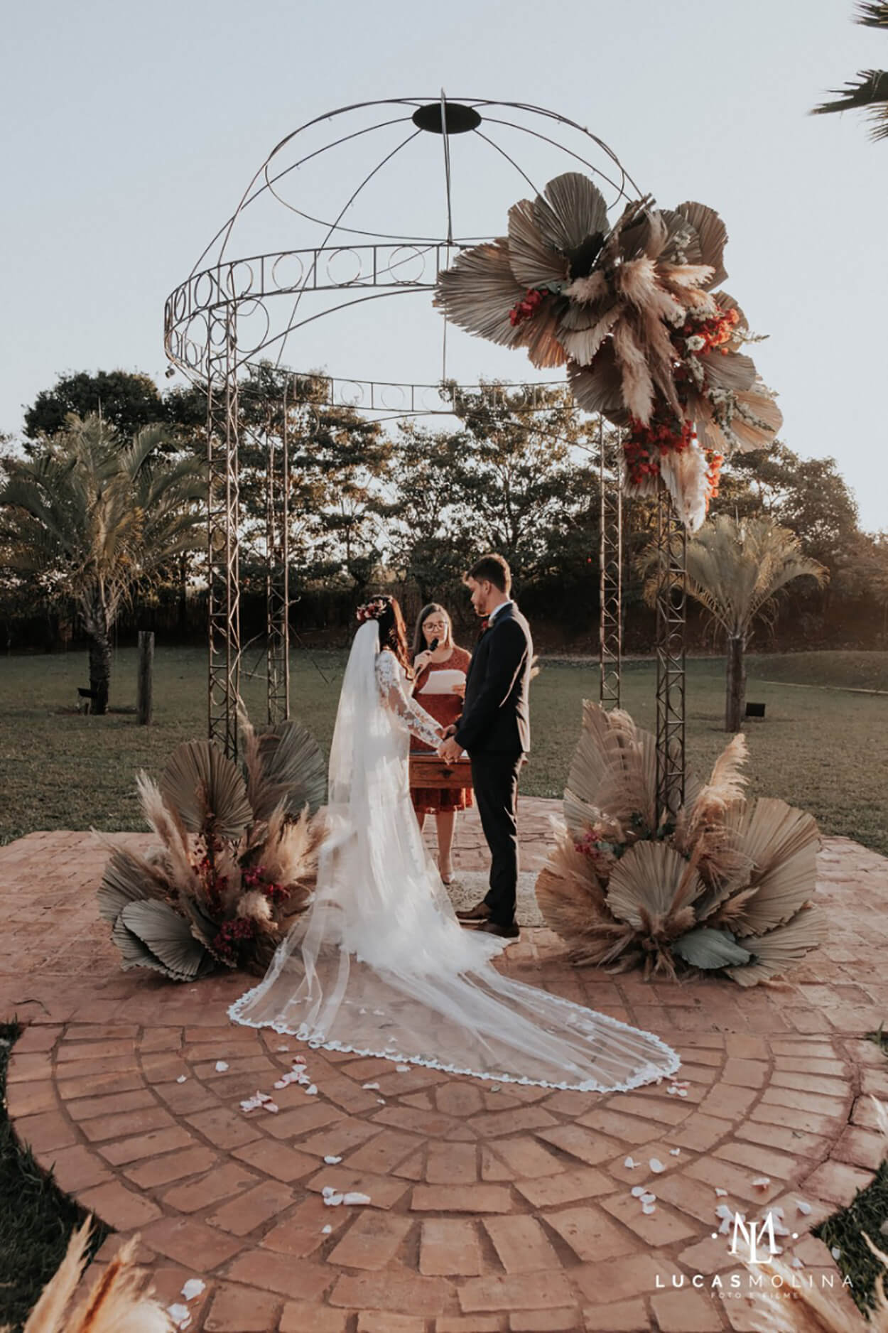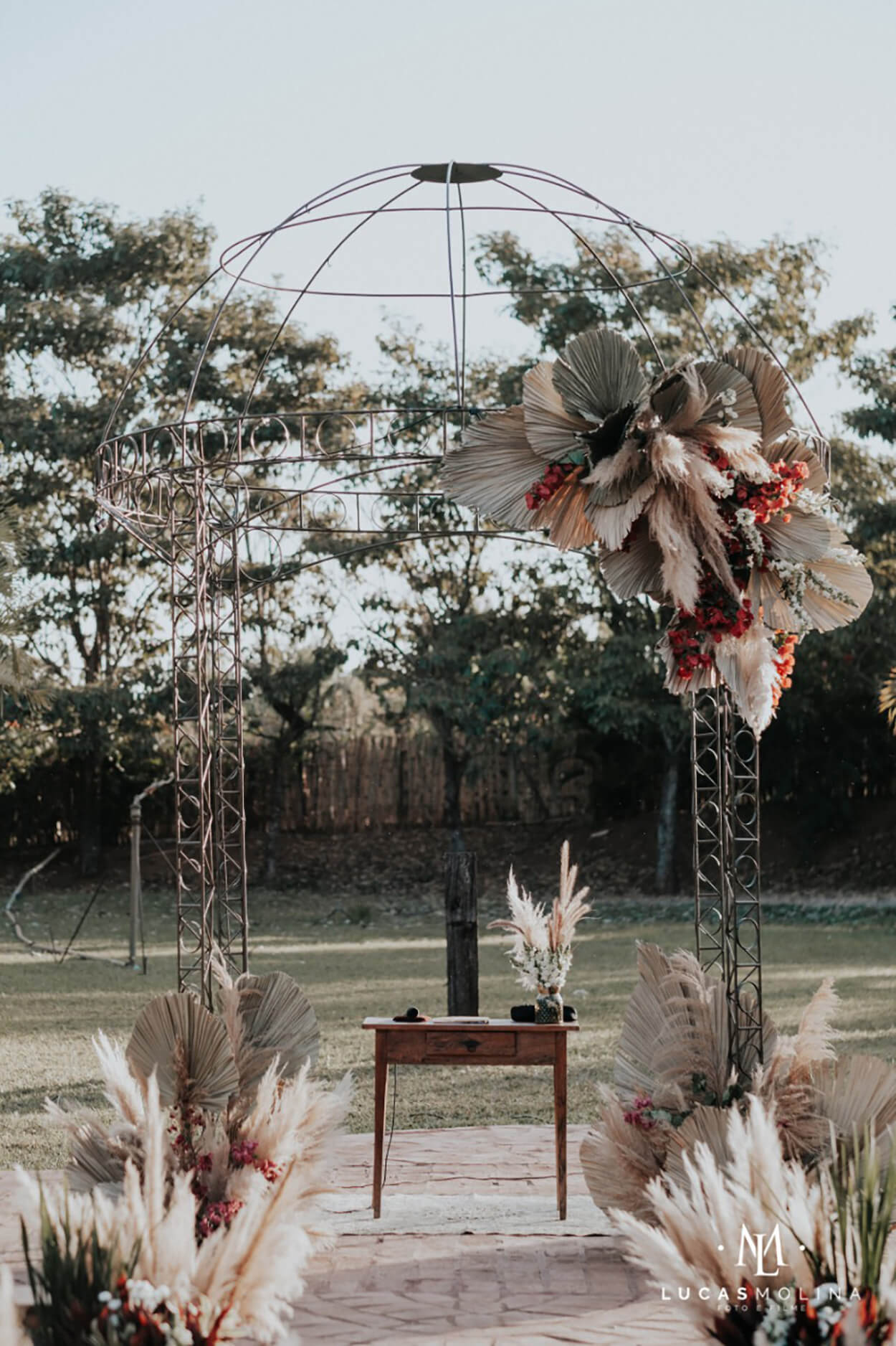 Em primeiro lugar, para aflorar o clima romântico e dar aquele toque boho, a decor investiu na composição floral. Claro que não poderia faltar as flores secas e o capim dos pampas que nós tanto amamos!