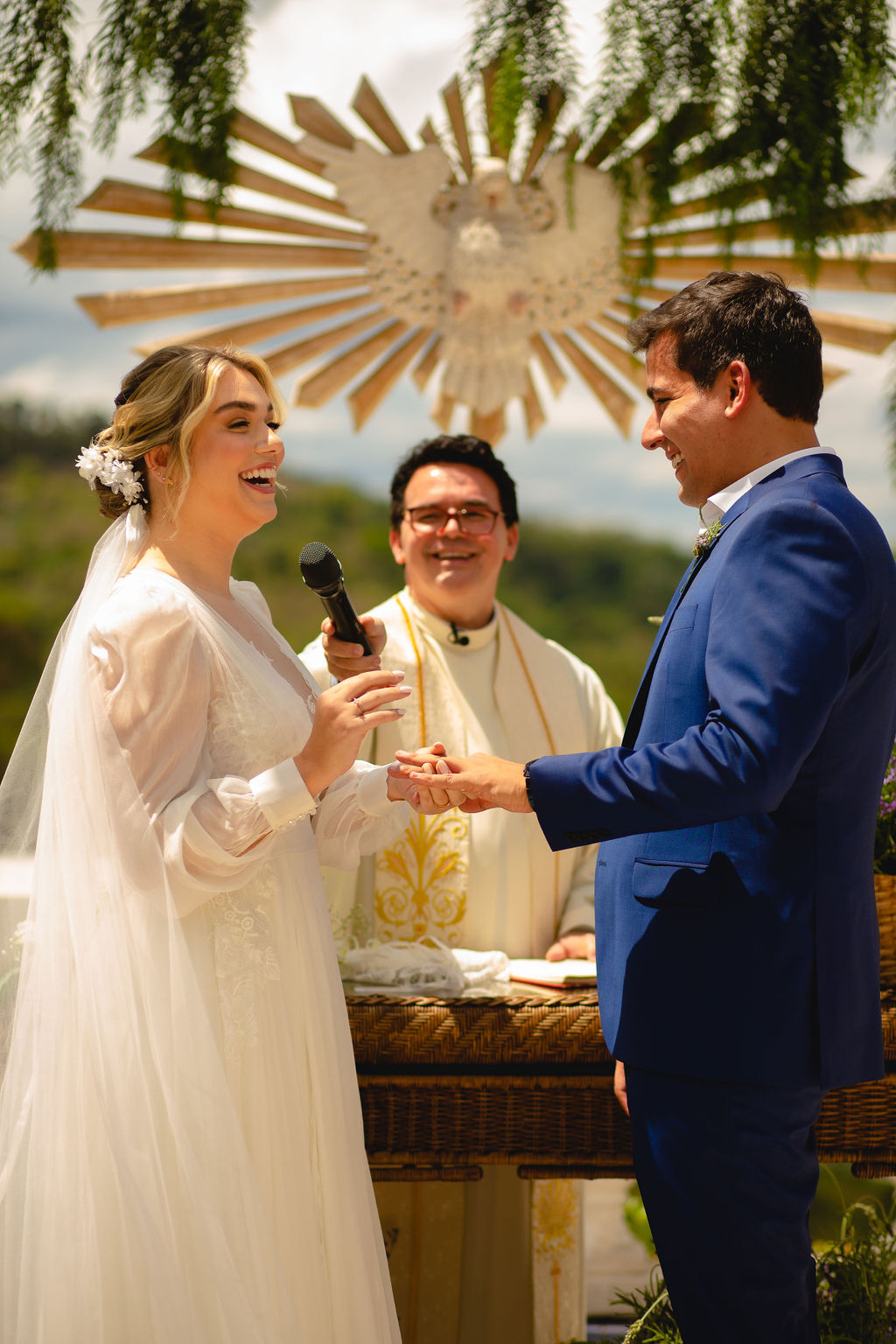 O momento mais inesquecível para a Natália foi a cerimônia, pois estavam cercados de tanto amor dos familiares mais próximos que tornou tudo mais especial.