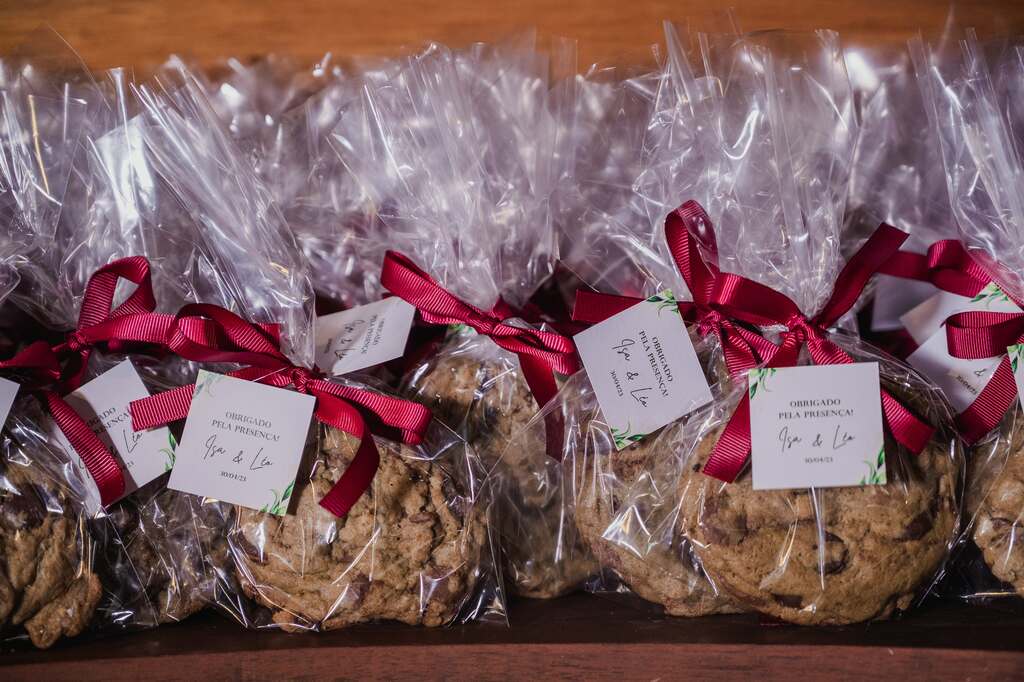 Fora isso, eu já fui confeiteira e a comida sempre foi uma forma de demonstrar meu amor, então essa foi uma prioridade. Nós fizemos a caixinha dos padrinhos, os brigadeiros e os cookies de lembrancinha no lugar do bem casado!