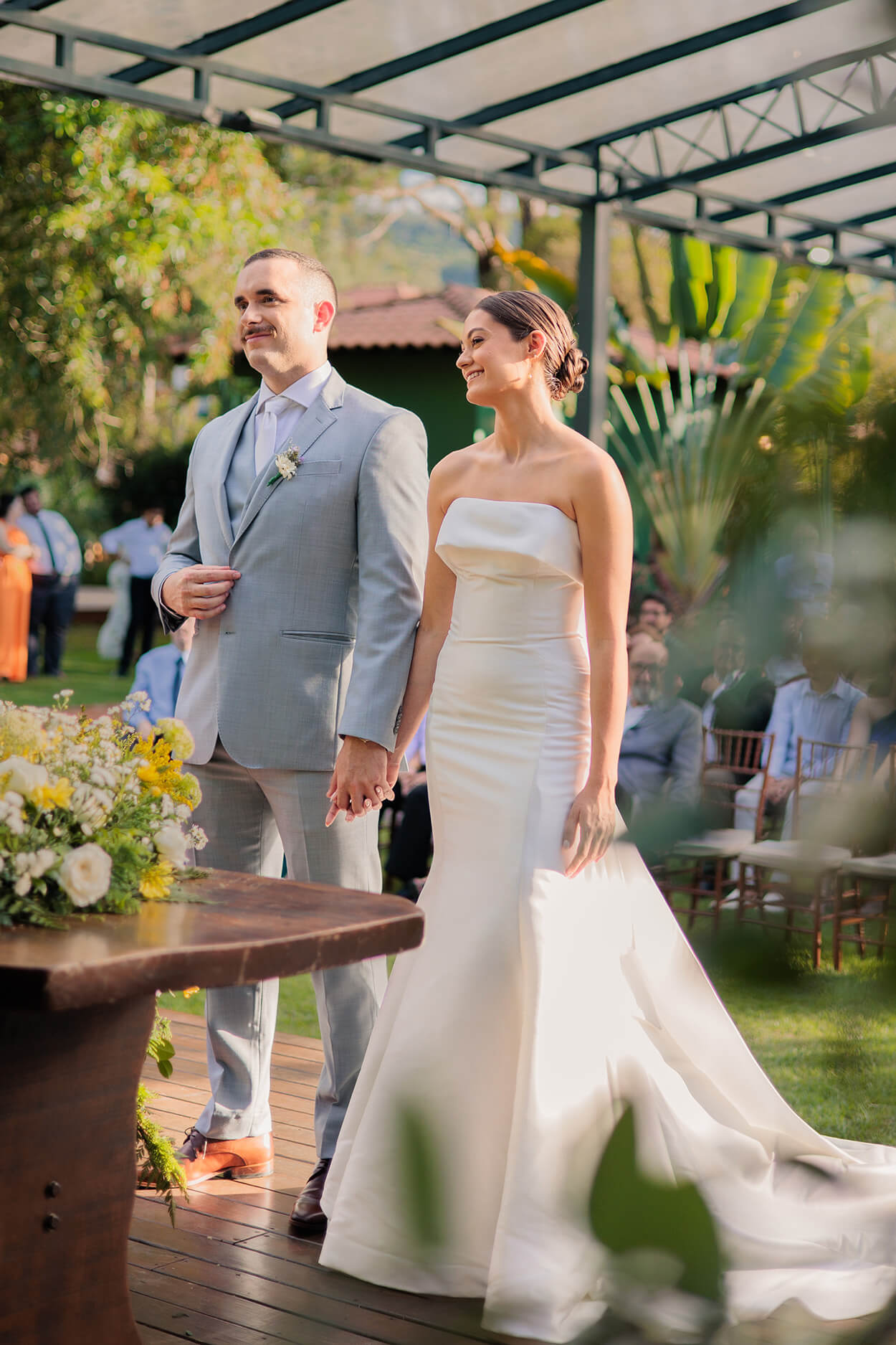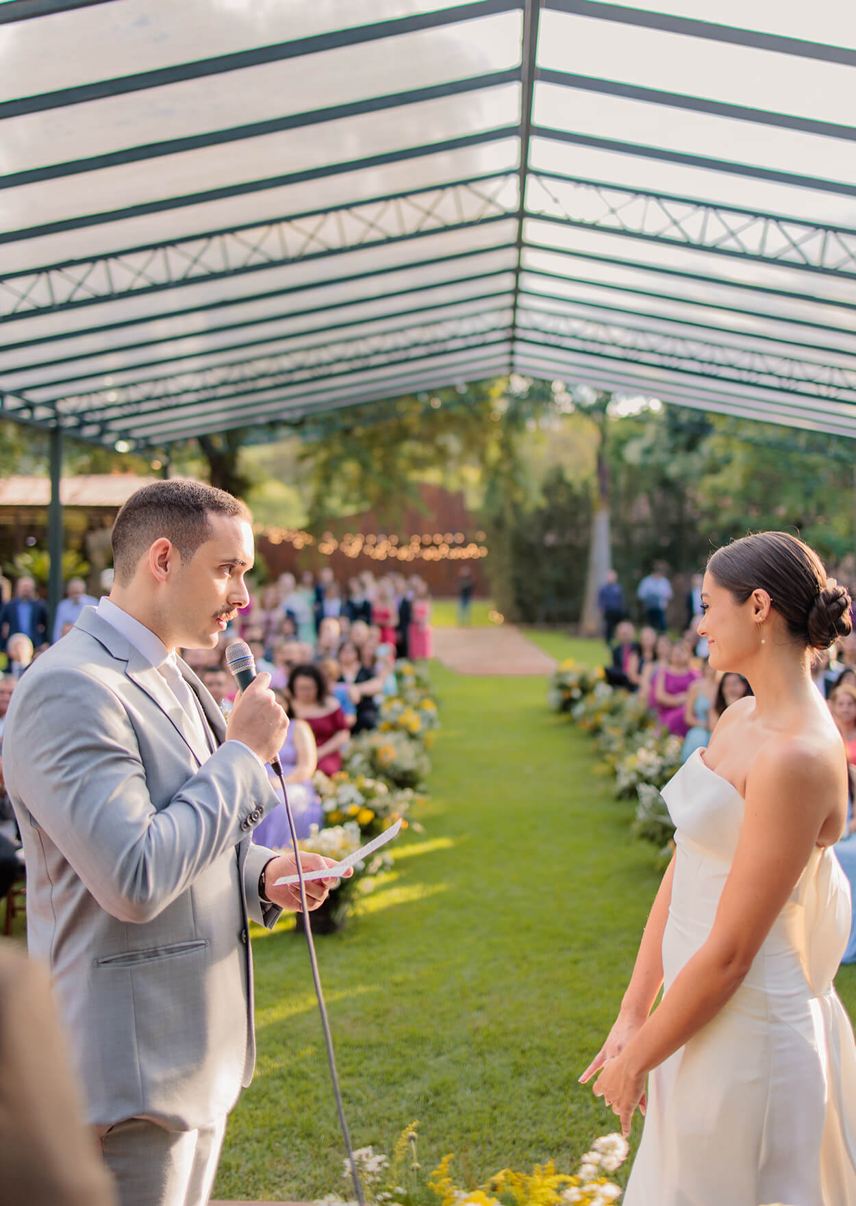 As madrinhas se revelaram emocionadas ao ver a amiga vestida de noiva, assim como o pai dela. Por fim, o casal deu as mãos e trocaram palavras de amor antes da cerimônia.