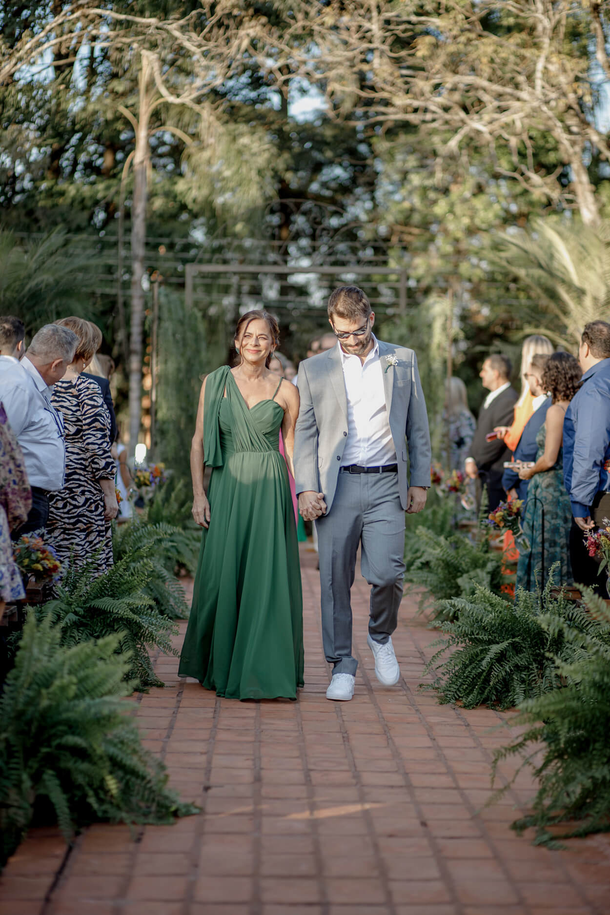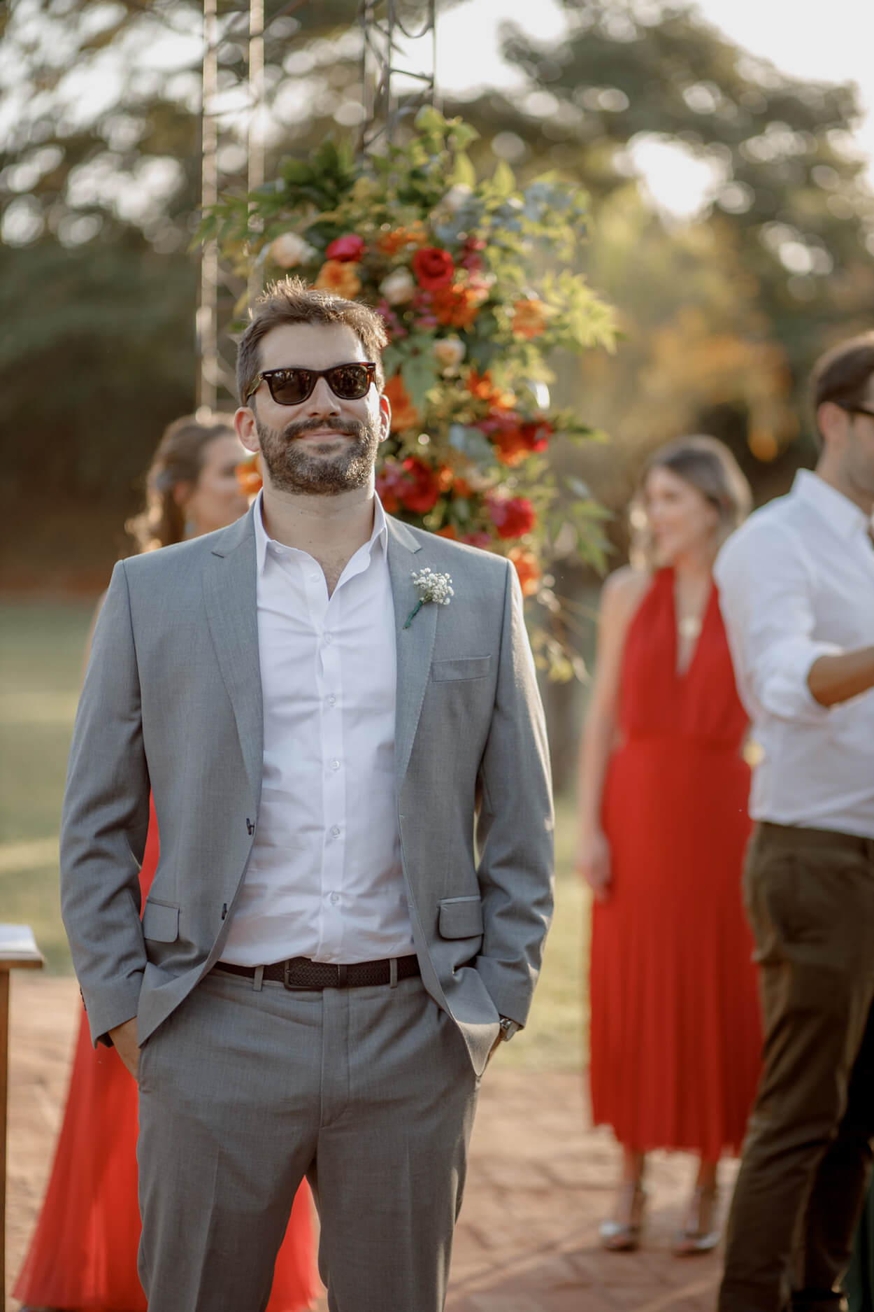 Já deu para notar que o Thiago é um noivo cheio de estilo, né? Não é a toa que ele escolheu finalizar o look com um tênis mais casual e óculos escuros.