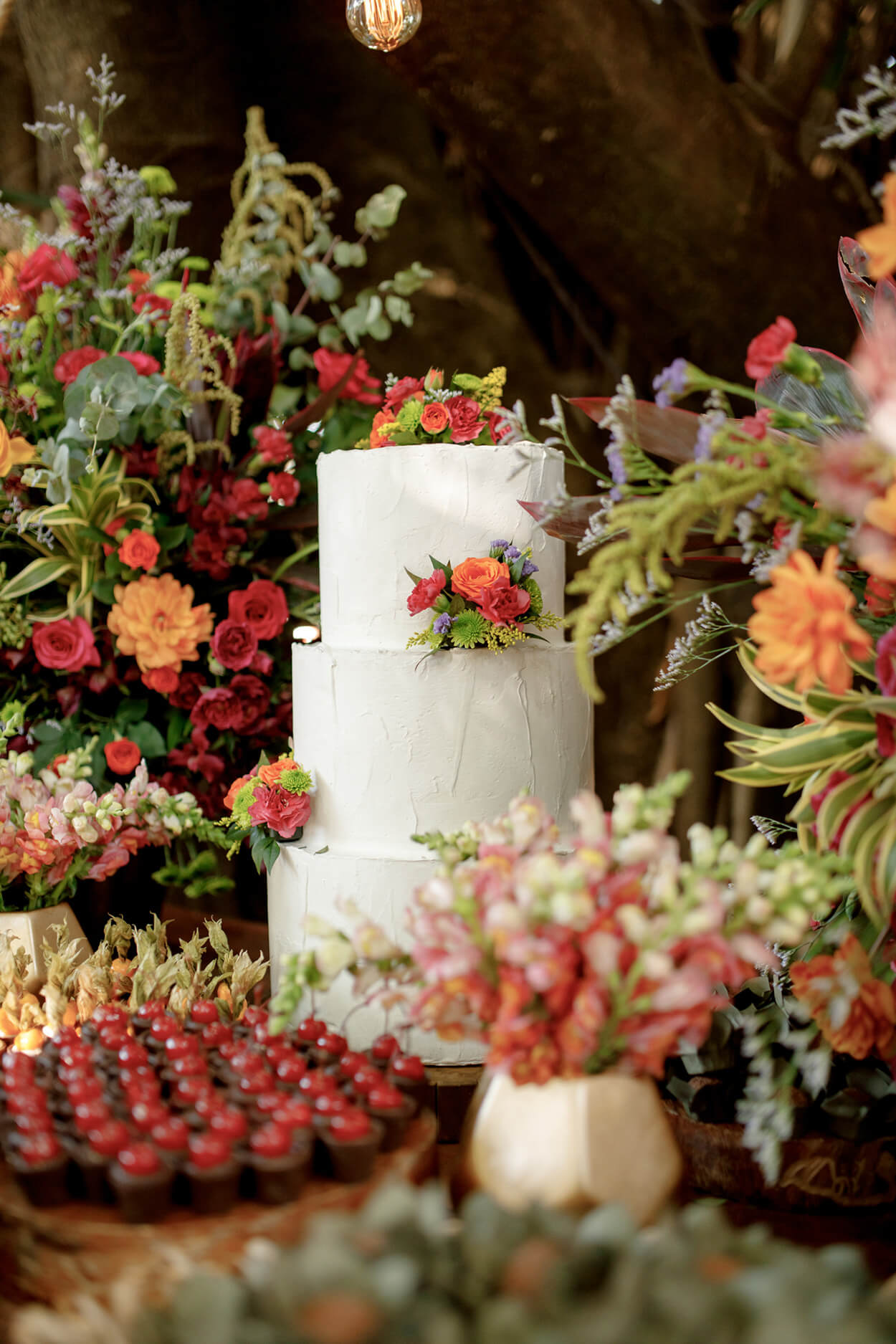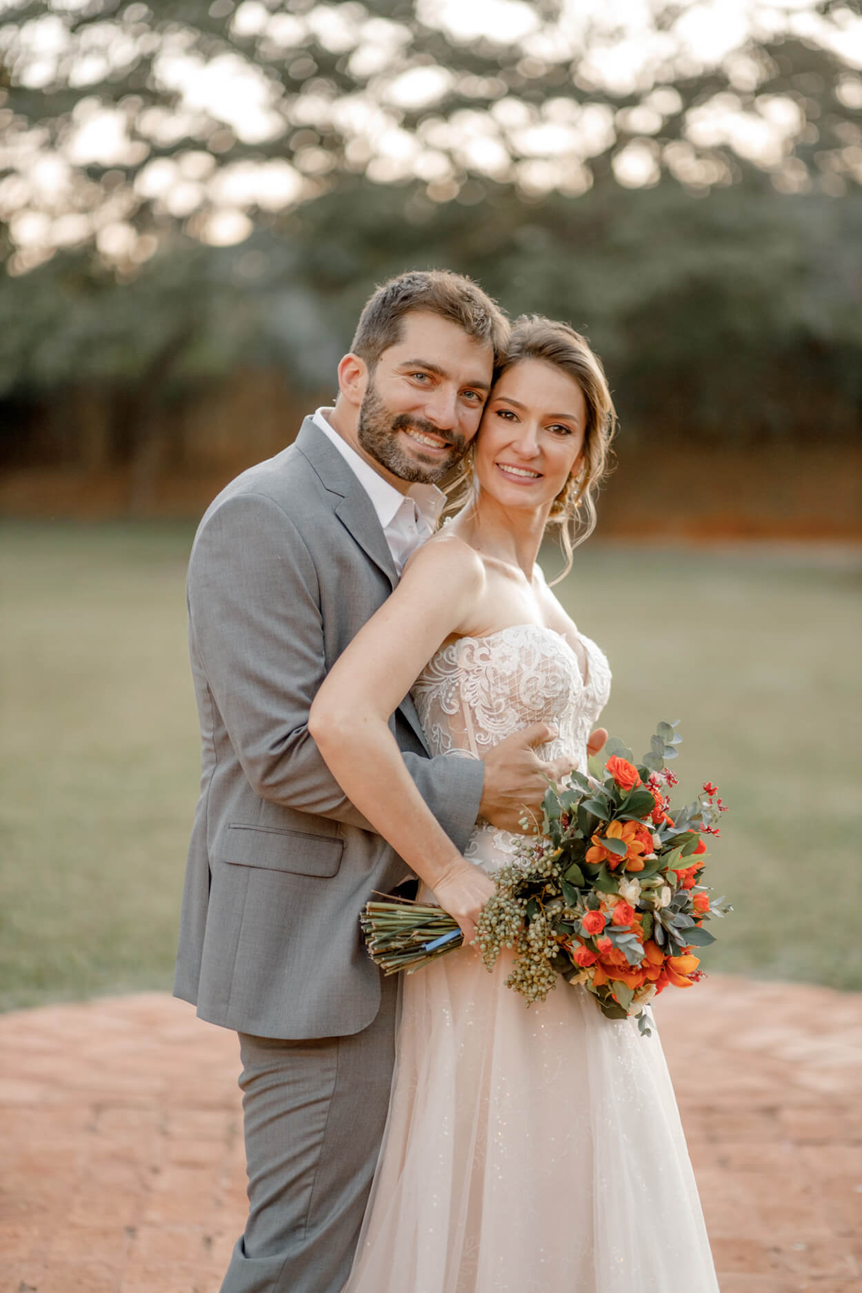 O casamento aconteceu em um belo sábado, em um local presenteado pela beleza natural. Podemos perceber que a paleta de cores é outonal, com cores mais puxadas para o amarelo e vermelho, ou seja, cores quentes.