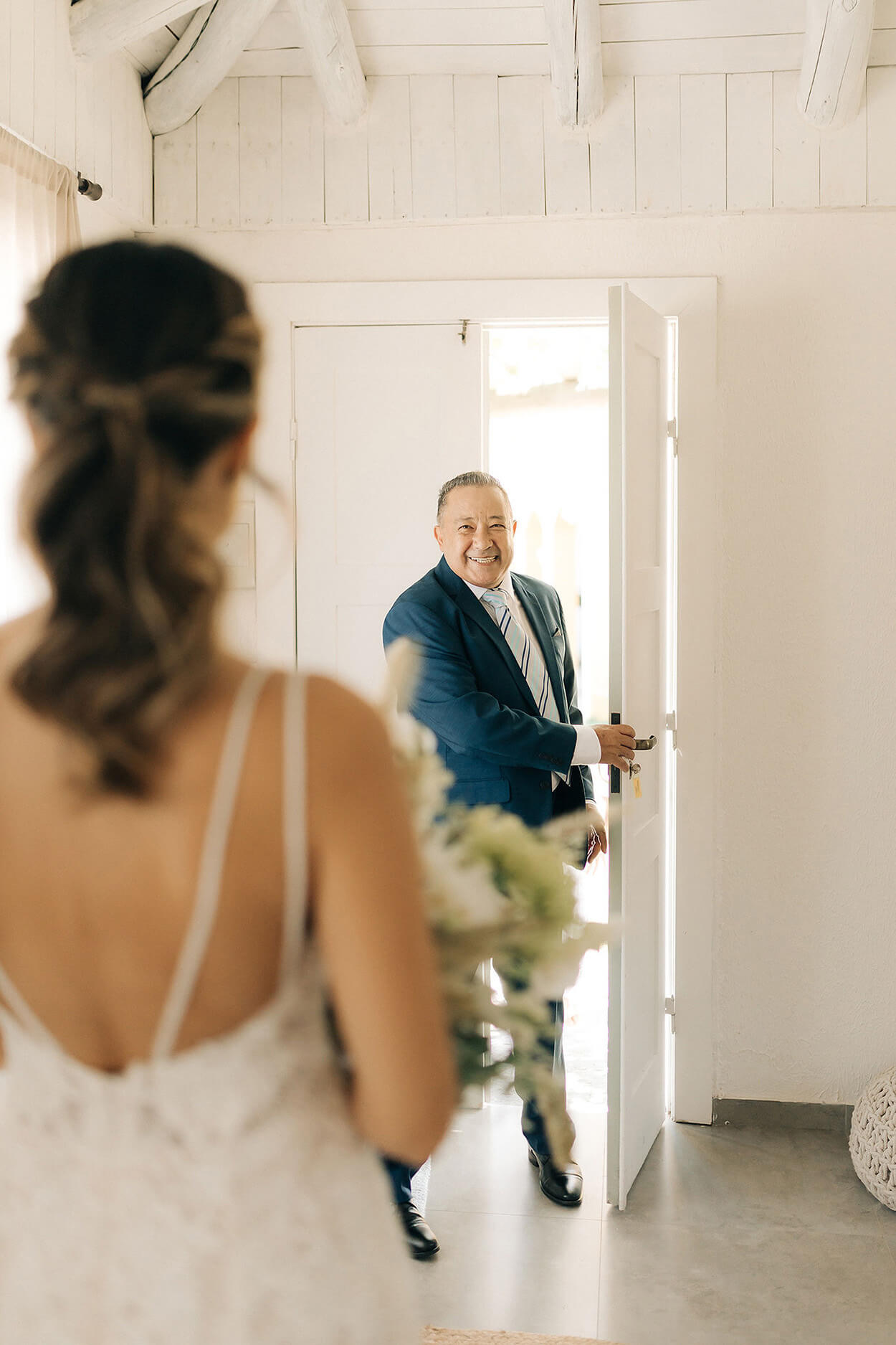 Você já pensou em como os seus pais e o seus sogros vão participar da sua festa, além da entrada? Muitas noivas ficam em dúvida se devem se arrumar com a mãe e as madrinhas, por exemplo. Então, que tal optar por um momento para as fotos do making of ou até mesmo um first look?