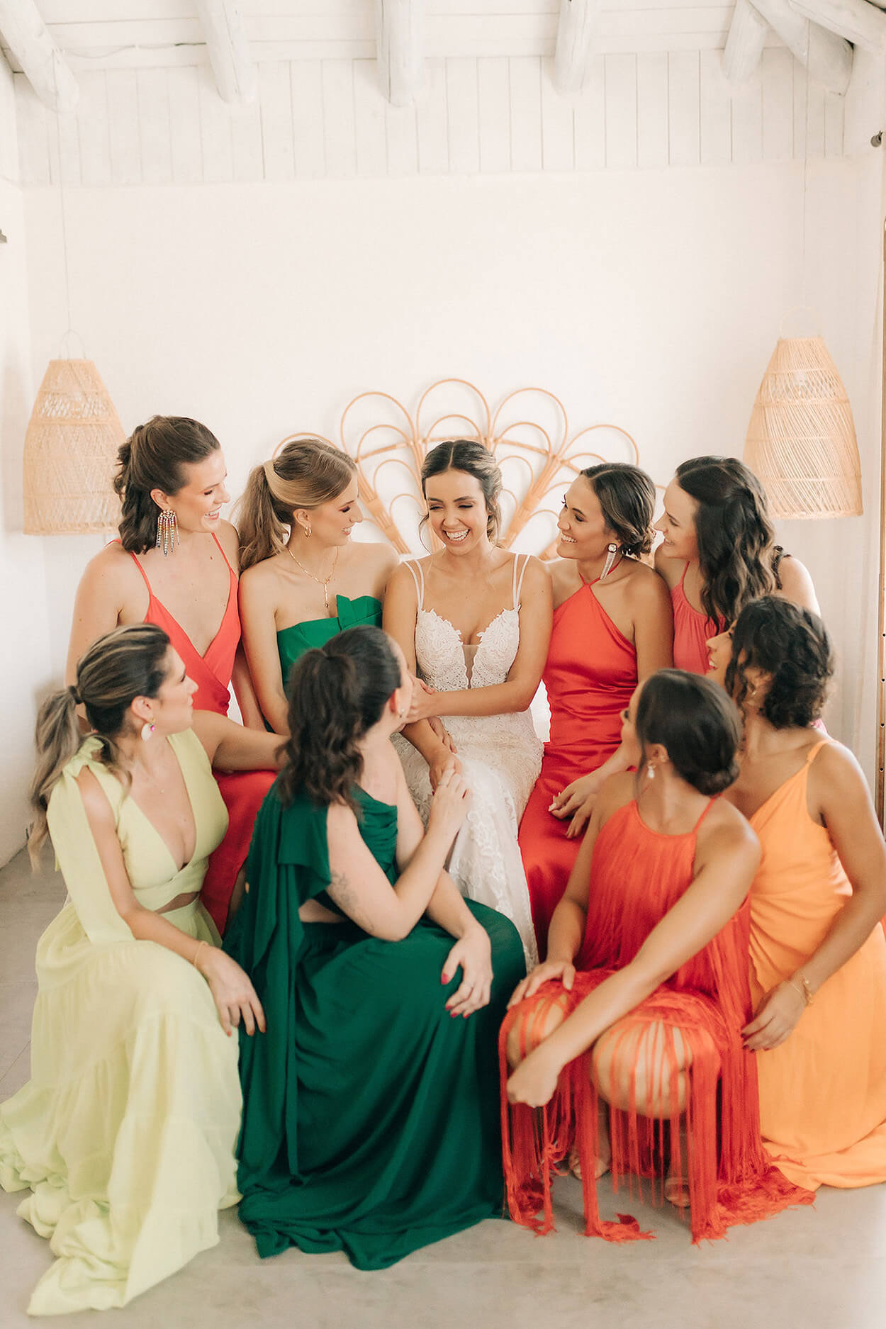 Chegou o momento tão esperado! A paleta escolhida para as madrinhas tem esse ar alegre e divertido por conta da variedade de cores e também pela intensidade delas. Os modelos com tonalidade mais vivas junto dos mais pálidos formaram a combinação perfeita.