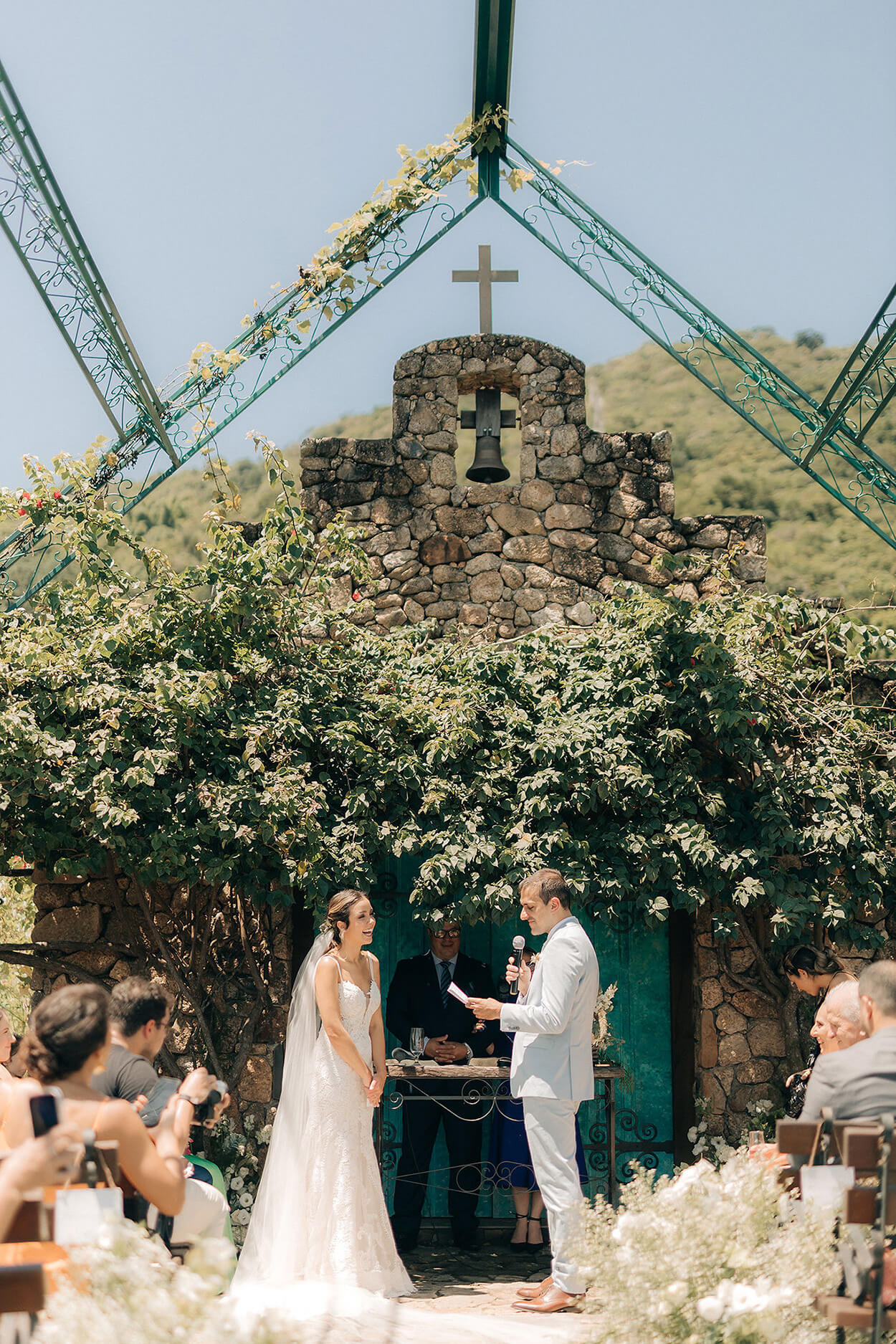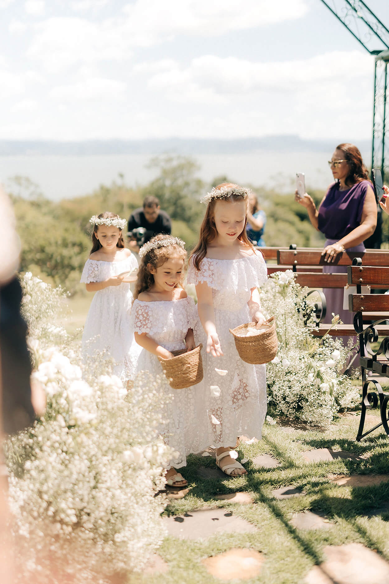 Nós sabemos que vocês adoram olhar as roupas das daminhas e pajens. E olha só que exemplo lindo para as meninas! E elas ficaram ainda mais fofas com as coroas de flores, né?