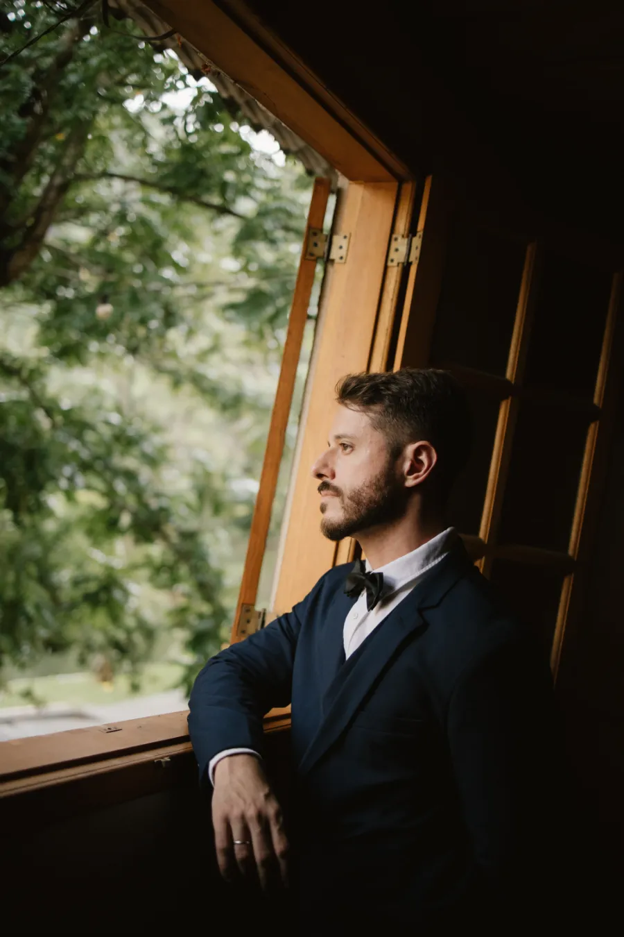 A cerimônia, que seria ao ar livre, precisou ser transferida para a casa de vidros. Um espaço igualmente lindo, mas não era o sonho inicial.