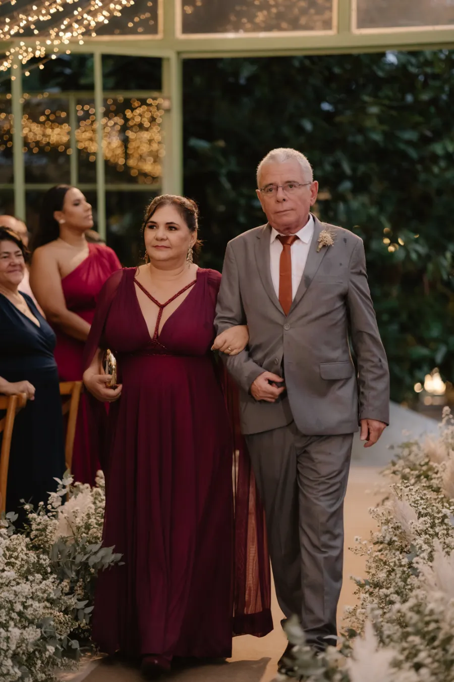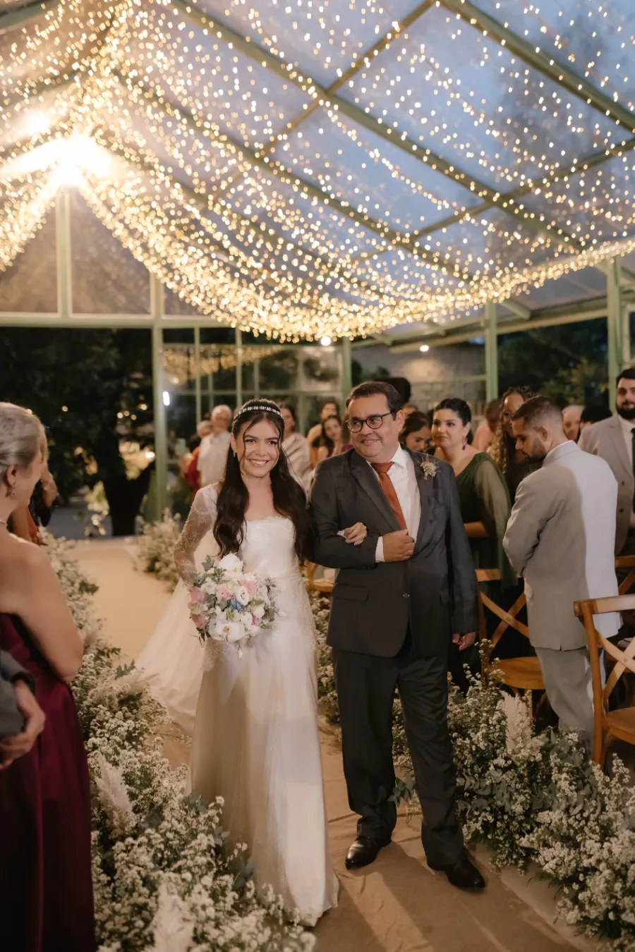“Mesmo com tudo isso, eu estava zen. E quando entrei, vi os rostos dos meus familiares e amigos… Cada olhar me deu força. Meu pai me acompanhou até o altar. Um momento só nosso. Inesquecível.