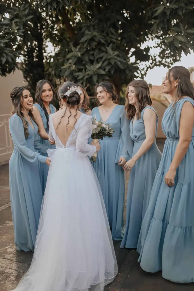 Já as madrinhas de casamento podem brilhar com vestidos coordenados em diferentes tons pastel, criando uma harmonia visual bem bacana. Outra opção é apostar em cores padronizadas.