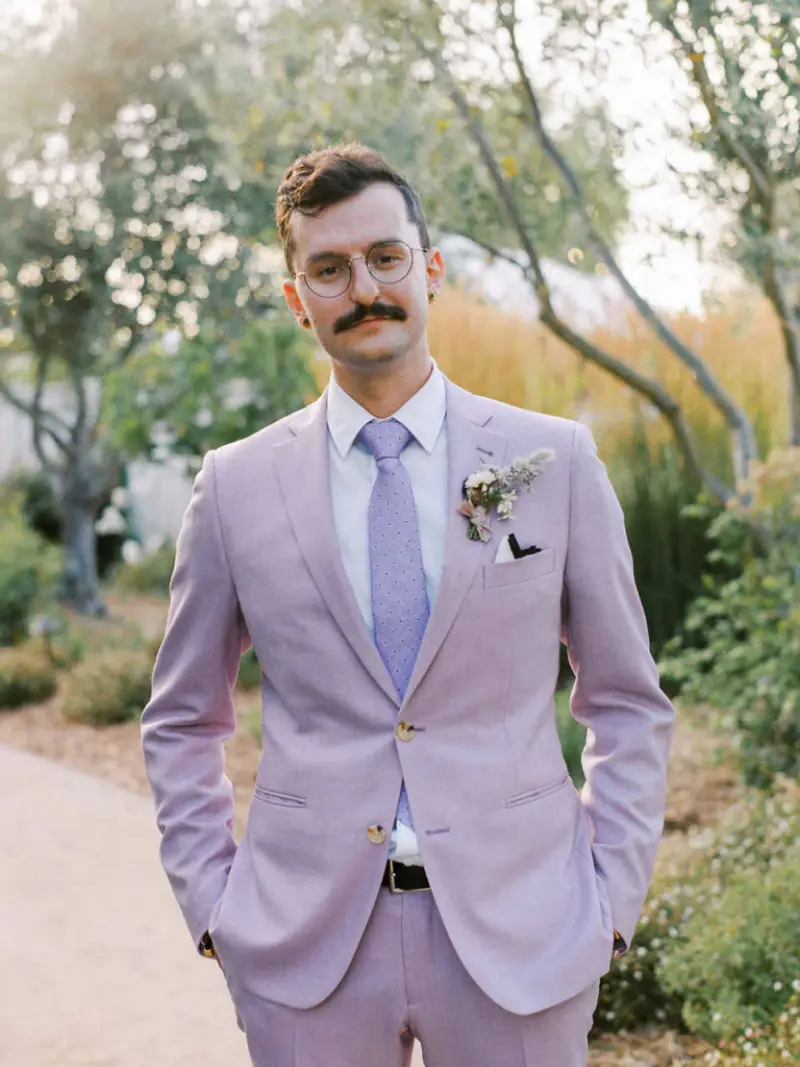 E para aqueles que são mais ousados e querem dar um toque ainda maior de personalidade, por que não usar um terno em cores pastéis mais evidentes, como lilás, azul, rosa, verde, por exemplo?