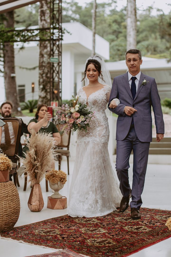 O espaço ganhou uma decoração que ressaltou a sua beleza, no estilo boho e rústico, numa paleta de cores em tons de rosa e verde bebê e com muito capim dos pampas que amamos!