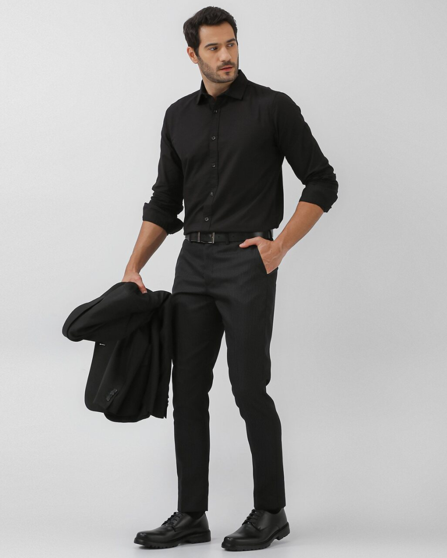 No caso dos homens, um terno escuro, como preto, azul marinho ou cinza escuro, é uma boa escolha. A gravata pode ser usada, mas não é necessária se o ambiente permitir algo mais flexível. Os sapatos sociais escuros podem ser nos mesmos modelos do casamento durante o dia.