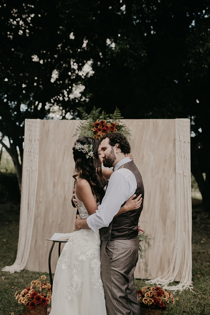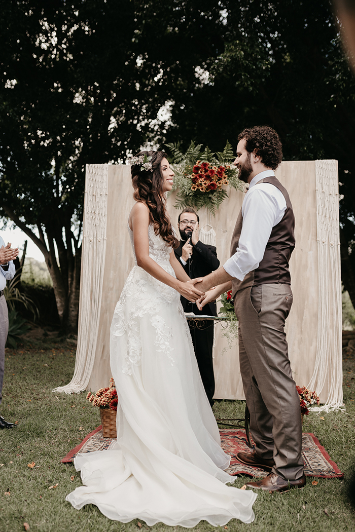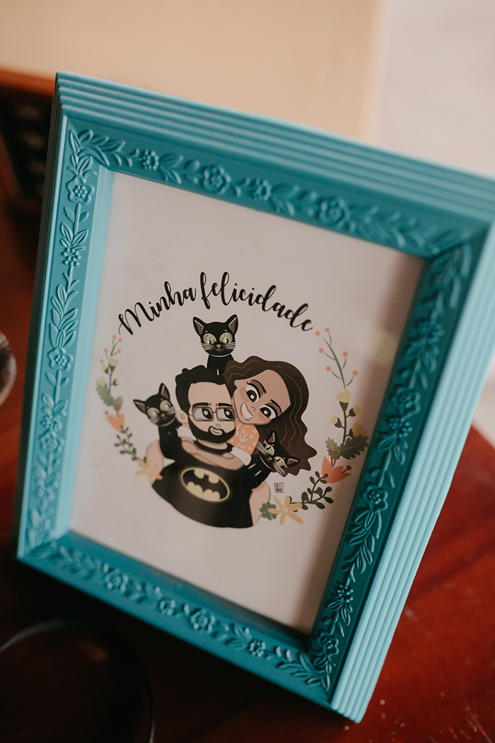Nós tínhamos muitas ideias no início mas a medida que a data ía se aproximando ficava mais fácil ir decidindo e até descartando muita coisa que não era essencial ou não fazia sentido pra gente. No fim, a essência do que queríamos estava lá, um casamento aconchegante e com elementos de decoração que representassem a gente individualmente mas também a nossa relação.”