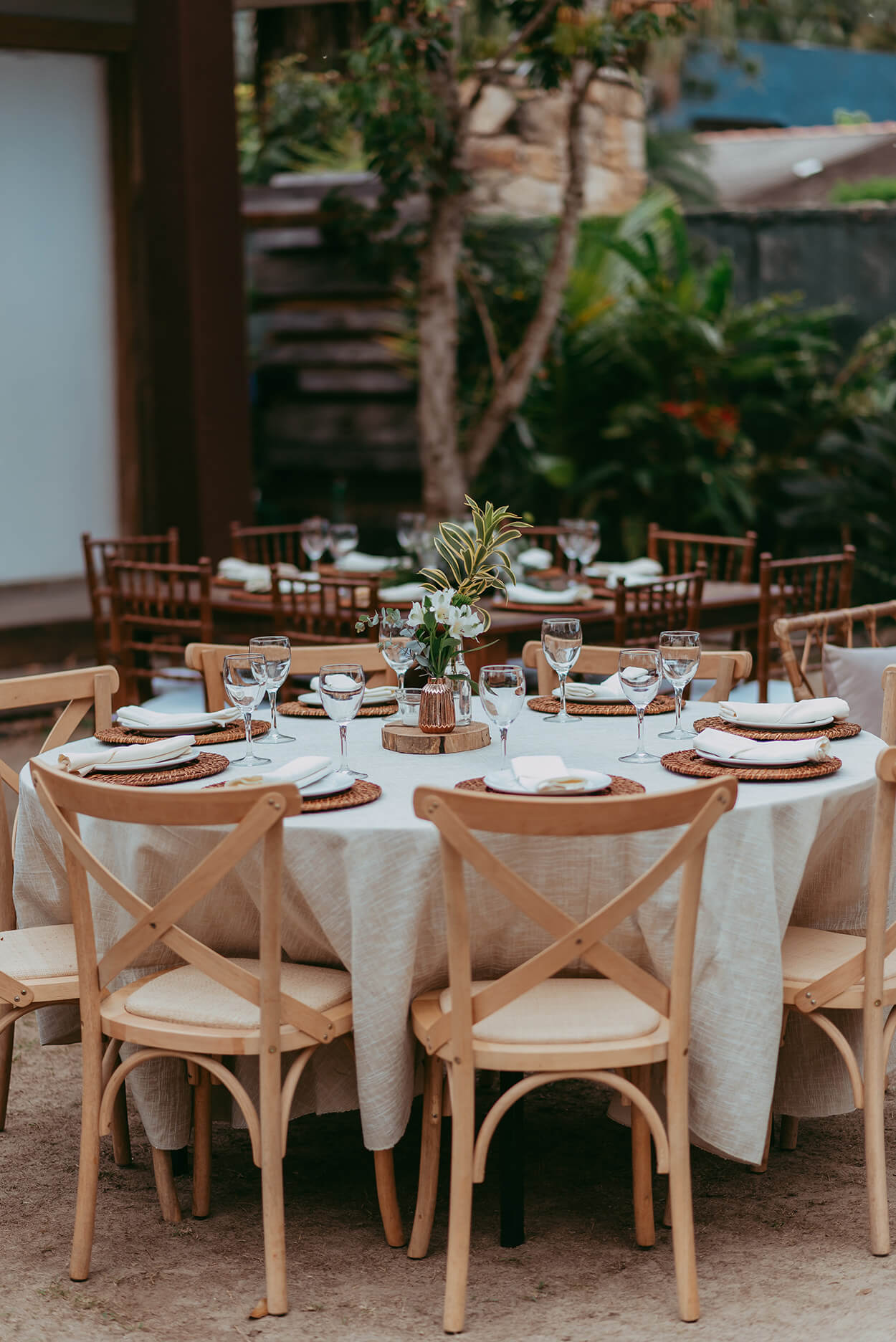 Ah, reparou que em cima da mesa tem alguns leques? Esses detalhes fazem toda a diferença para que os convidados fiquem à vontade em um casamento ao ar livre.