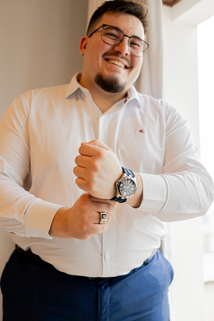 “Tiveram vários diferenciais, a começar pela decoração no estilo português que combina com a arquitetura do local da festa, da cidade em si e também com a gente, pois ambos somos de família com ascendência portuguesa.