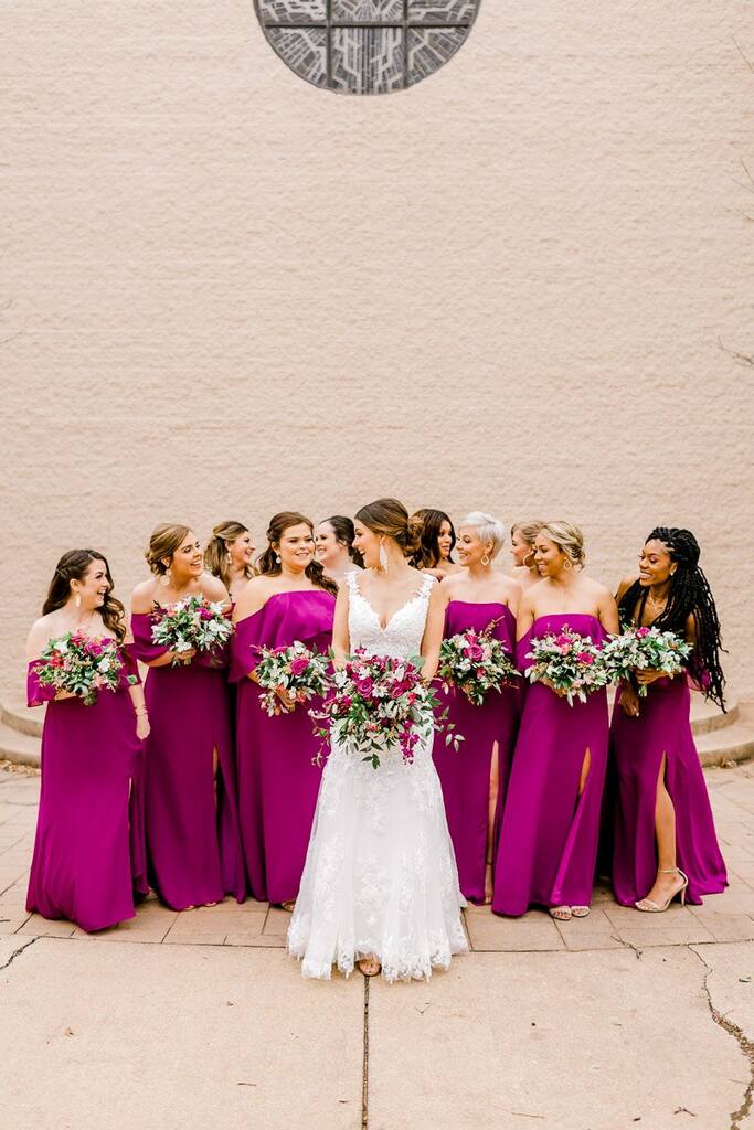 Quer visual mais impactante do que isso? Com certeza suas madrinhas vão ficar encantadas com vestidos fúcsia! Sem contar que, como a cor está em alta, é bem fácil de encontrar vários modelos nas lojas.