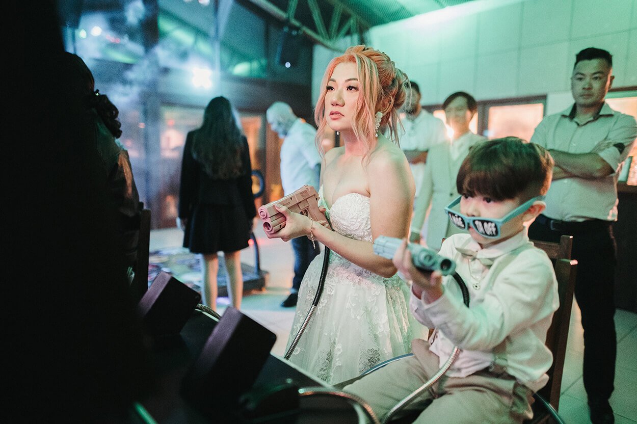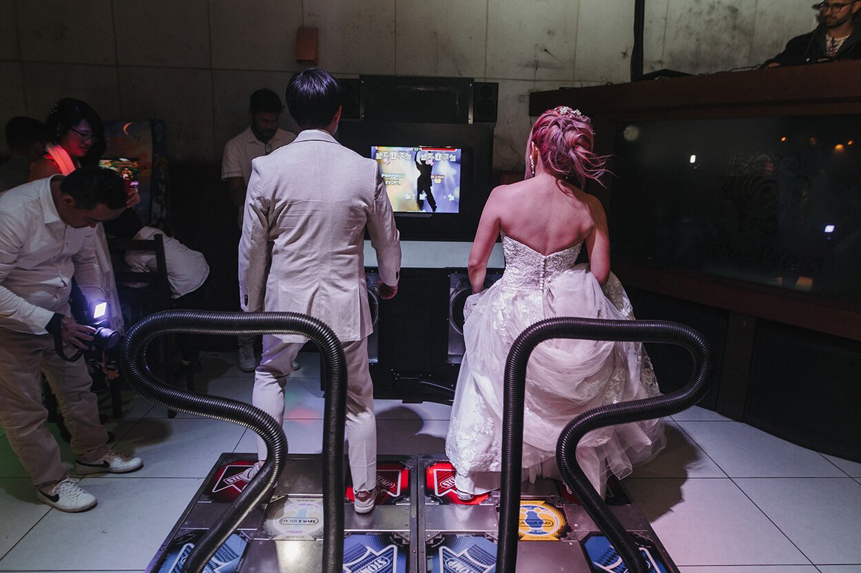 O casamento ficou muito mais marcante por conta dos elementos DIY e as máquinas de fliperama na balada.