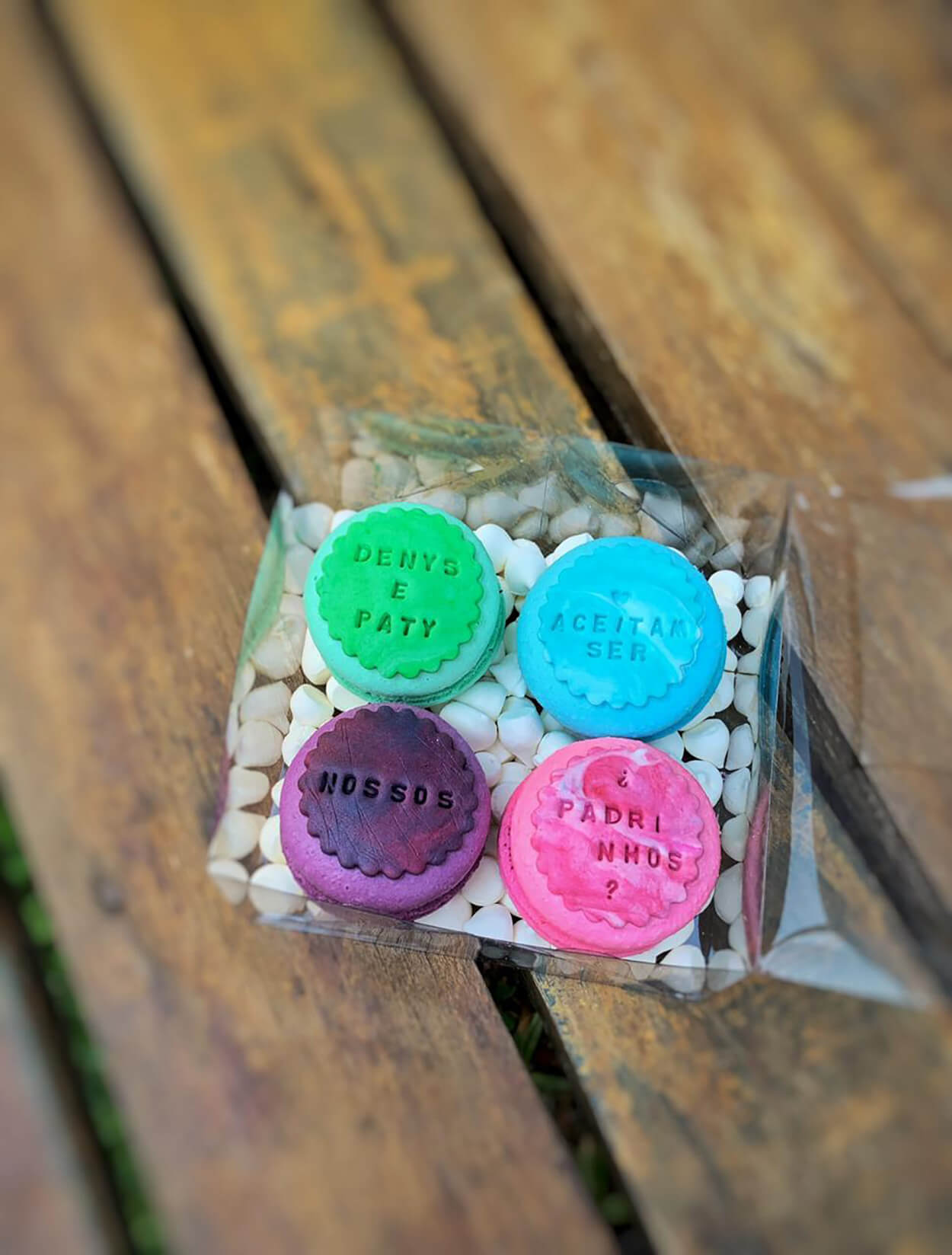 Também teve um quadro com impressões digitais, tingimento de tecido para as gravatas, lembrancinhas, o buquê da noiva e outro para ser jogado.