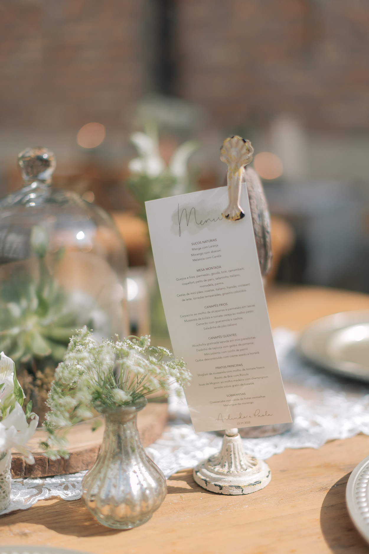 A Paola dividiu conosco que os detalhes fizeram total diferença no casamento. Tanto que não teve uma pessoa com quem ela conversasse que não dissesse “dá pra ver vocês nos detalhes”.
