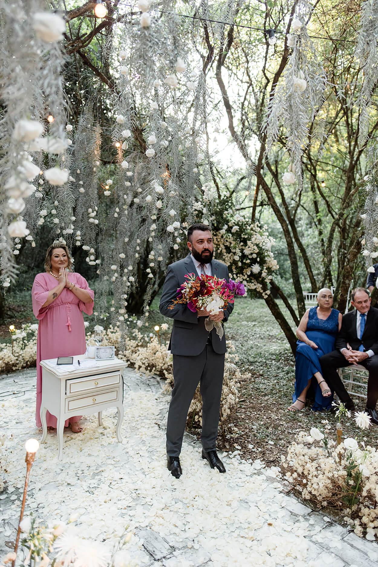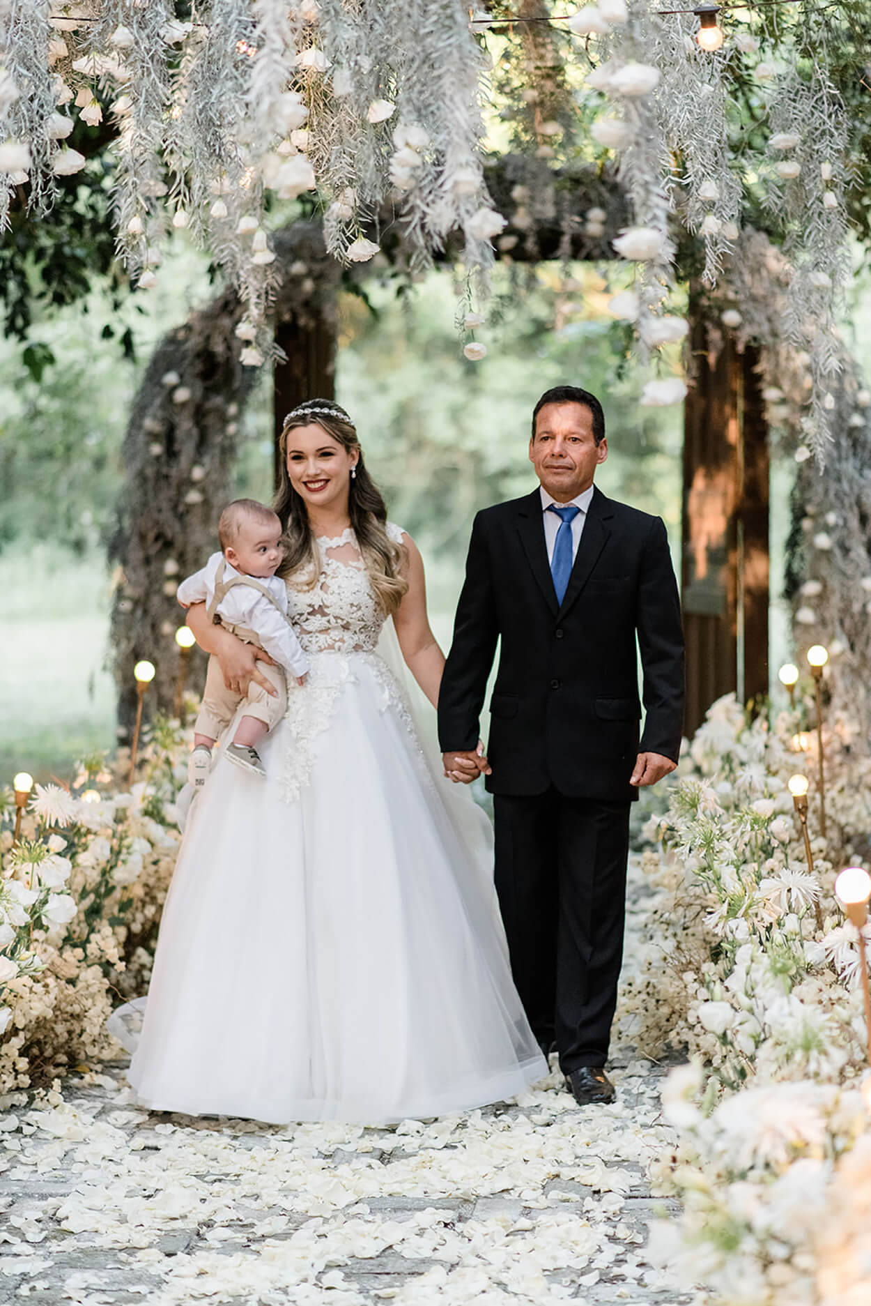 Enquanto os noivos organizavam tudo para o grande dia, eles descobriram que precisariam adicionar mais um convidado à lista: o Arthur, filho do casal. Que notícia, hein? E ele ainda fez uma participação e tanto: caminhou até o altar junto com a sua mãe.