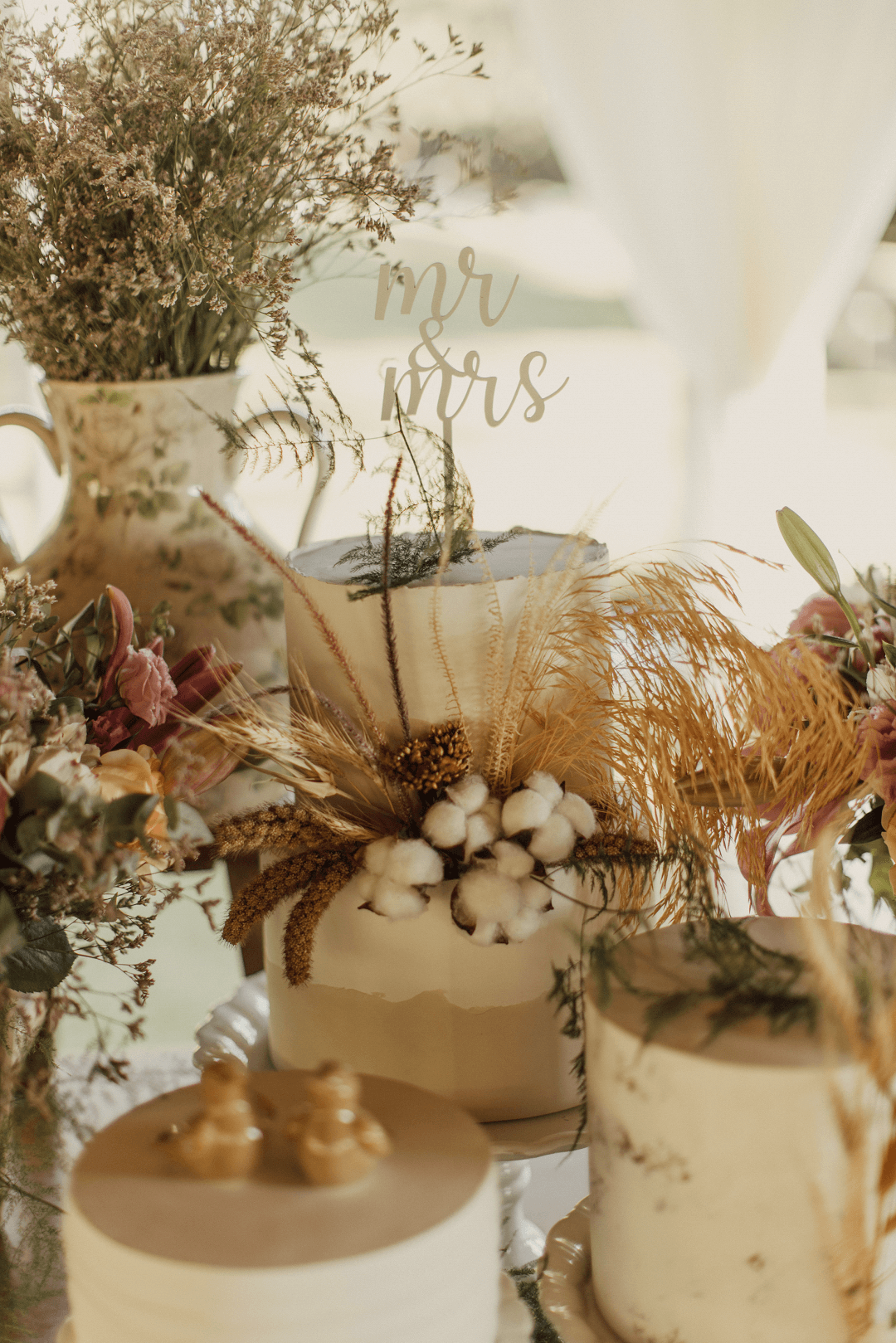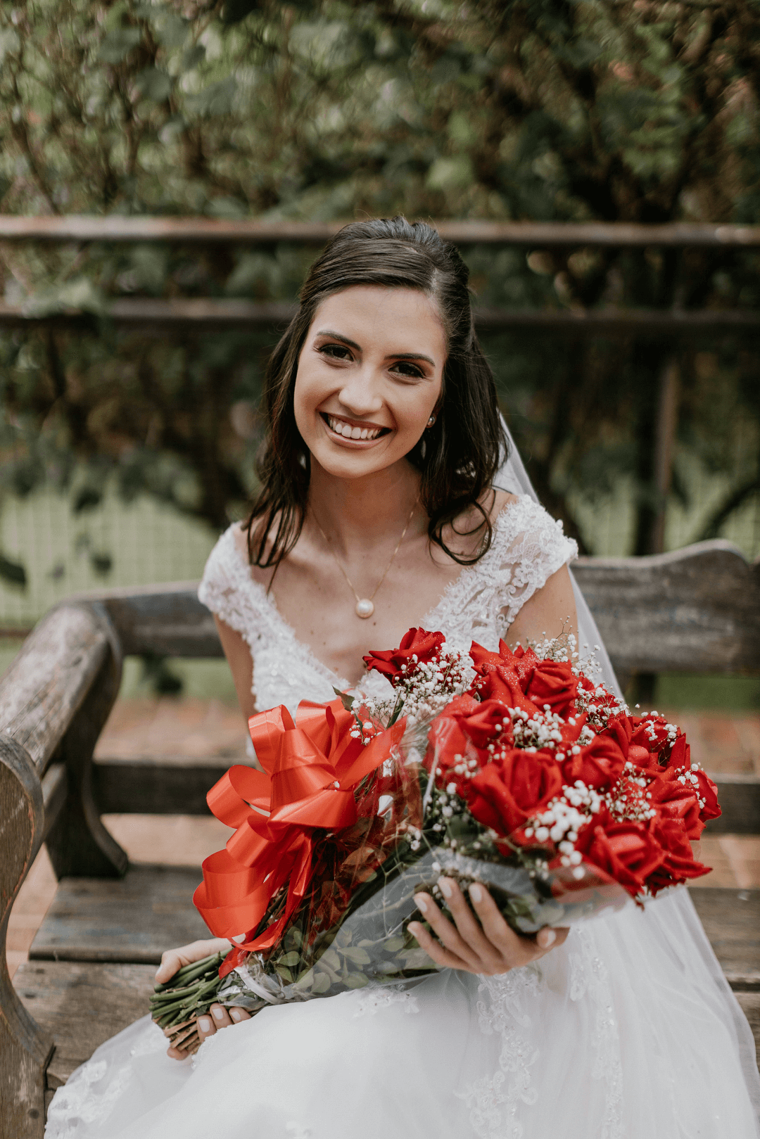 O grande dia contou com um toque especial com projetinhos DIY na identidade visual, convites e lembrancinhas. “Muitas coisas foram feitas por mim e minha mãe. O mel que entregamos como lembrancinha foi produzido pelo meu sogro. Usei joias que eram da minha mãe em vez de comprar novas”.