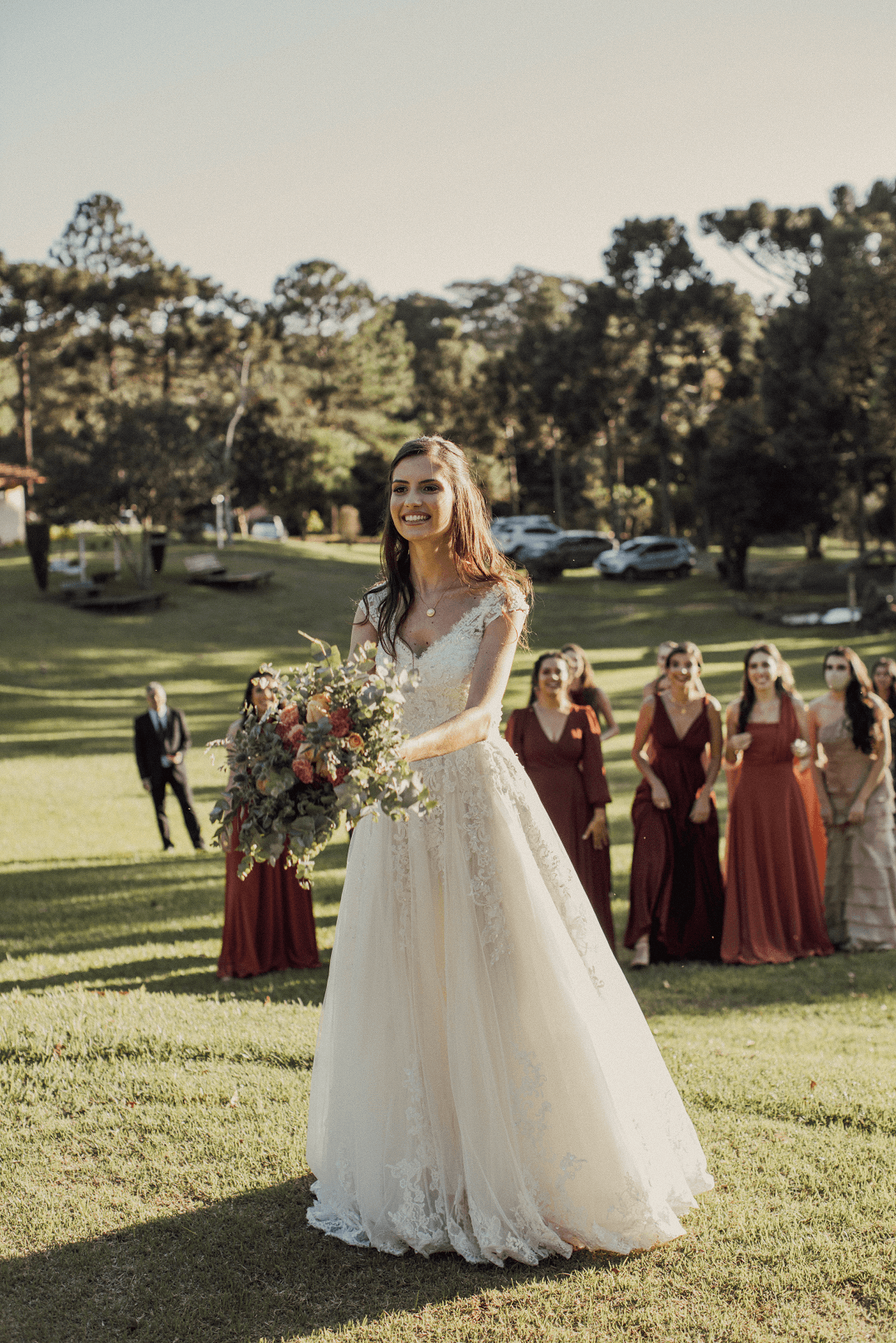 Além de um first look super fofo com os avós. “Uma parte muito linda foi encontrar meus avós, os quatro, antes de ir para Mauá da Serra. Eles não puderam estar presente por conta da pandemia e do deslocamento, mas foram até a casa dos meus pais onde me arrumei para me ver vestida de noiva. Não teve como conter as lágrimas”.