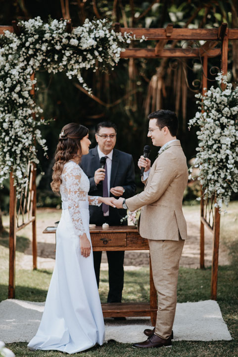 E para completar o dia perfeito, eles ganharam uma surpresa incrível, que a noiva conta como foi que descobriu. “Antes de entrar, eu escutei um barulho que me lembrou zumbido de abelha e como há um apiário próximo ao local imaginei que pudesse ser abelhas e era um drone! Uau!!! Ganhamos uma filmagem de drone no dia mais especial para nós, foi especial demais”.