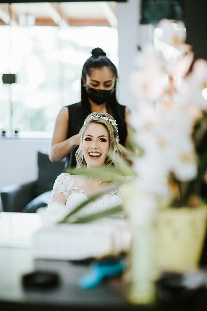 Para deixar tudo ainda mais intimista, os noivos convidaram o tio (pastor) para cumprir o papel de celebrante. “Não contratamos banda ou orquestra, convidamos minhas primas para cantar e tocar uma música durante a cerimônia. Essas escolhas tornaram nosso dia extraordinário!”.