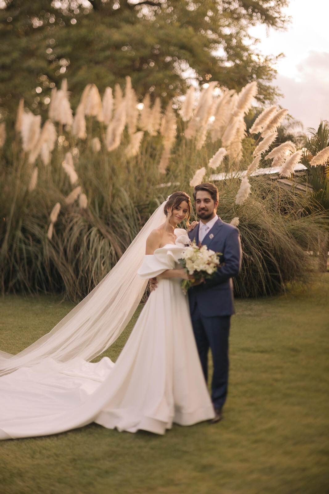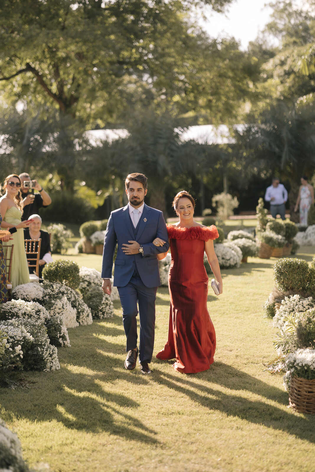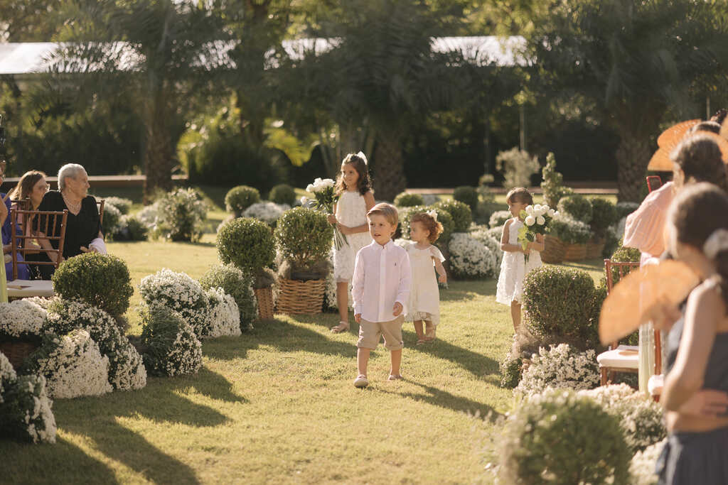 Ana Laura e Victor decidiram que o seu grande dia aconteceria no jardim em frente a uma capela.