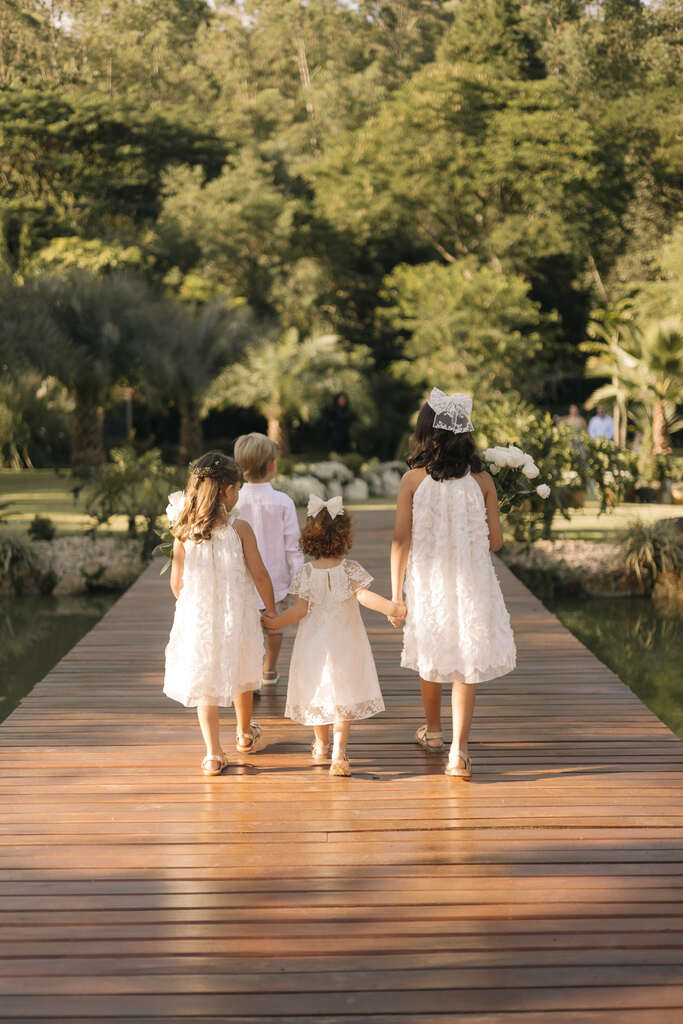 Simplesmente amamos os looks das daminhas e pajens! Viu como dá pra trocar os vestidinhos rodados por versões leves e delicadas?