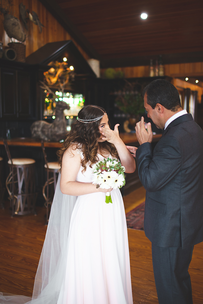 Foi um casamento rústico com muita coisa feita à mão. A Débora fez grande parte da decoração. Foi também bem íntimo e familiar, uns 230 convidados, mas eram só pessoas que realmente fizeram diferença no processo todo. Tudo foi bem descontraído e simples.
