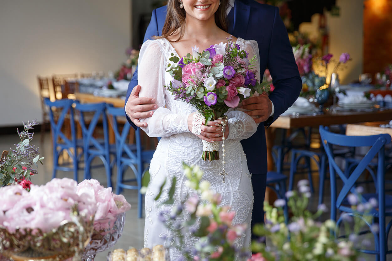 A harmonia entre cores e flores, com certeza, foi o ponto alto da decor. Há romantismo, delicadeza e muita personalidade em jogo. Basicamente, reuniram o melhor do casamento em classic blue com o casamento lavanda. Simplesmente perfeito!